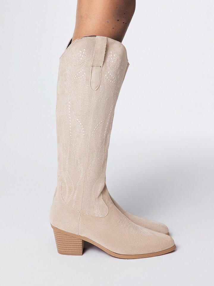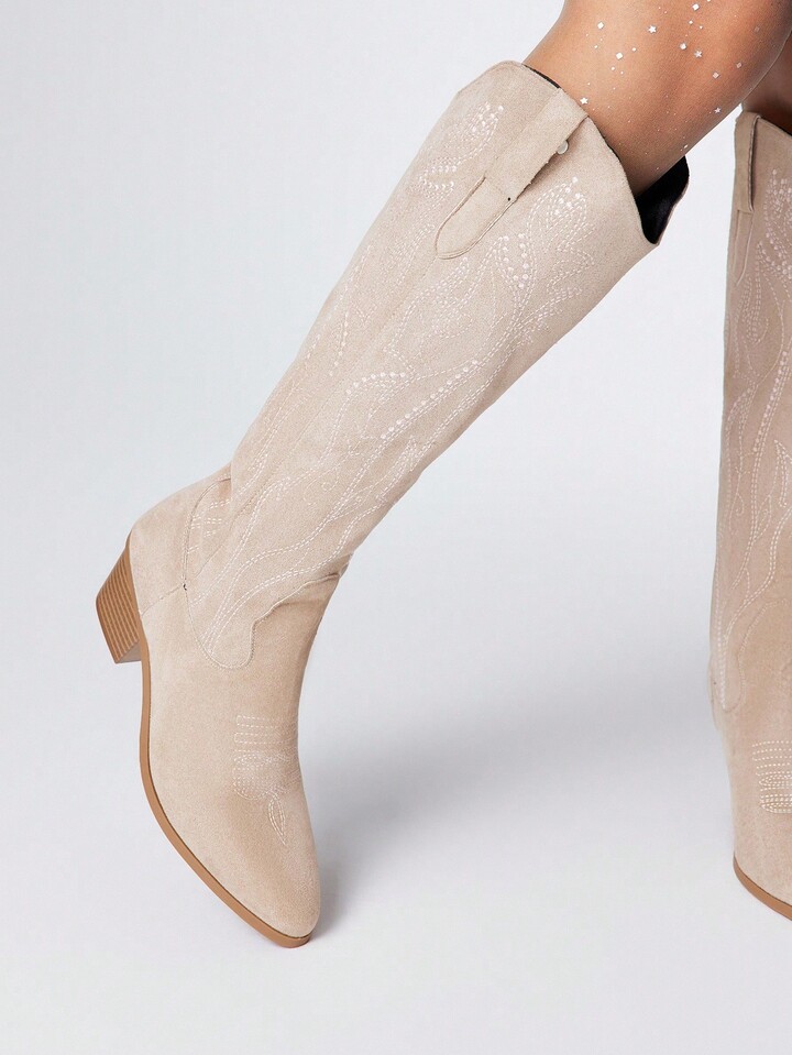 Kawaii Women's Hollow Design Butterfly Wing Embroidered Western Boots, New Spring/Autumn Leather Over-The-Knee Boots