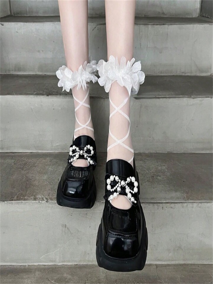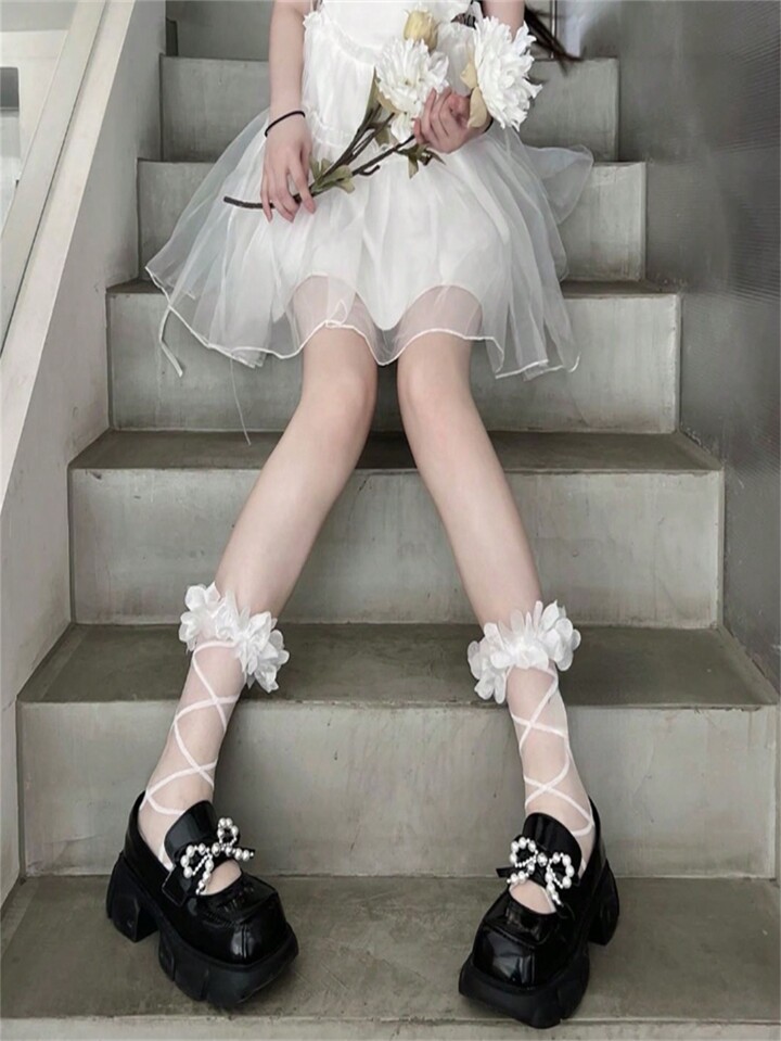 Kawaii Women's Mid-Calf White Lace Socks