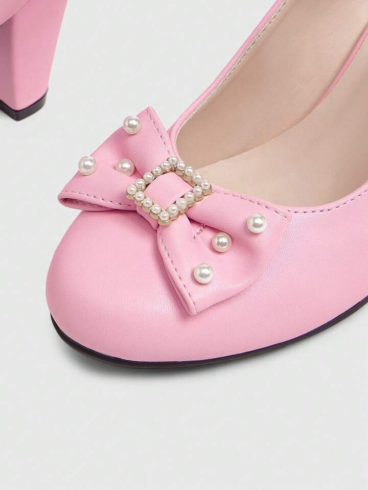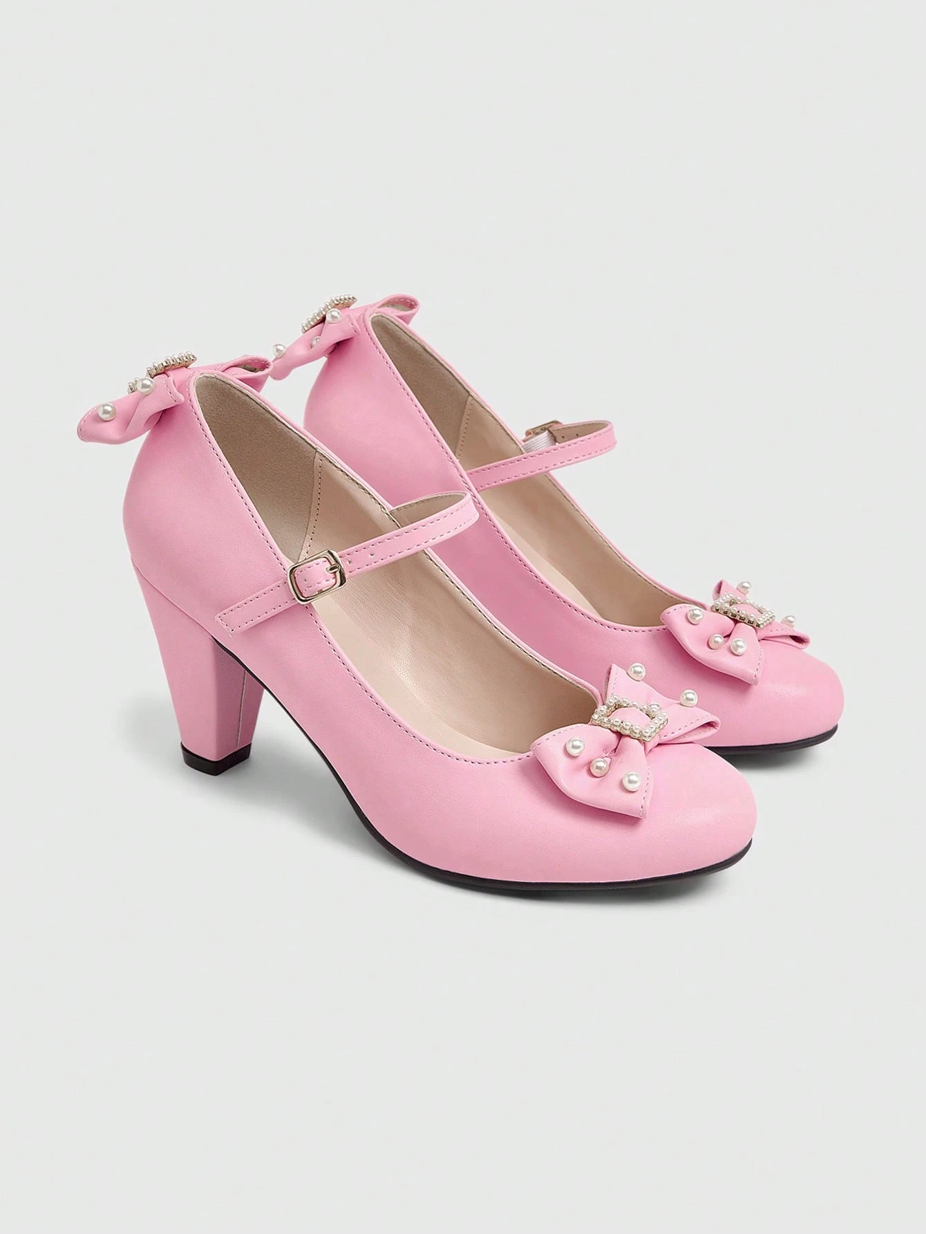 Kawaii Women's Pink Round Toe High Heel Mary Jane Shoes, Classic Lolita Style Floral Patchwork Design