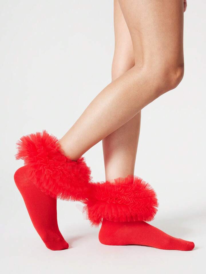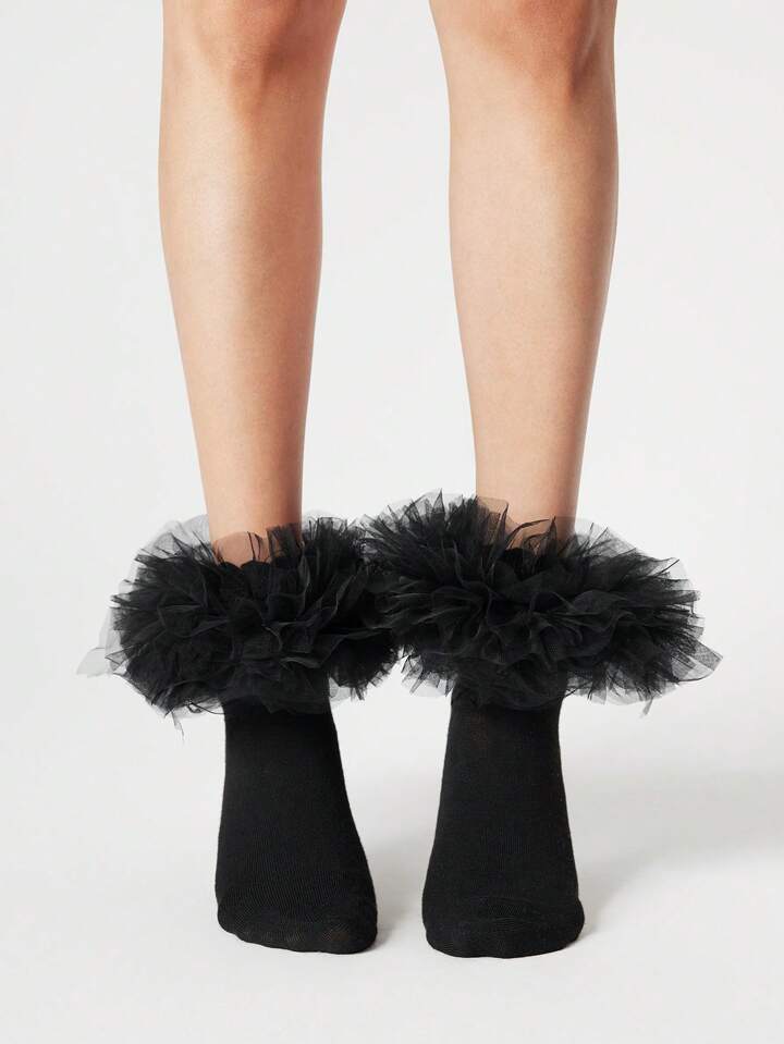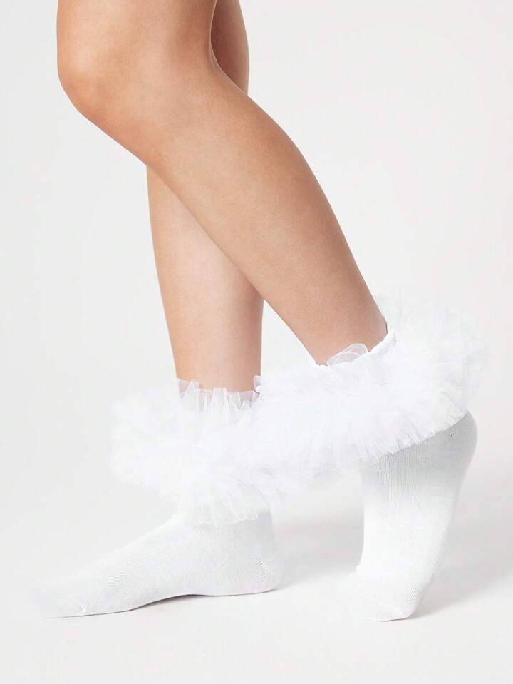 Kawaii Women's Plain Color Mesh Splice Mid-Calf Socks, Fashion