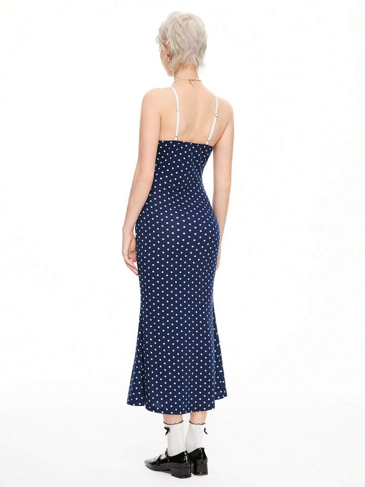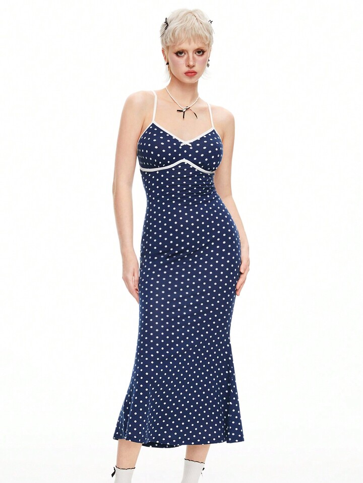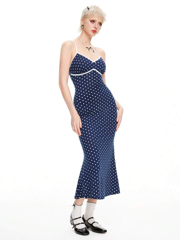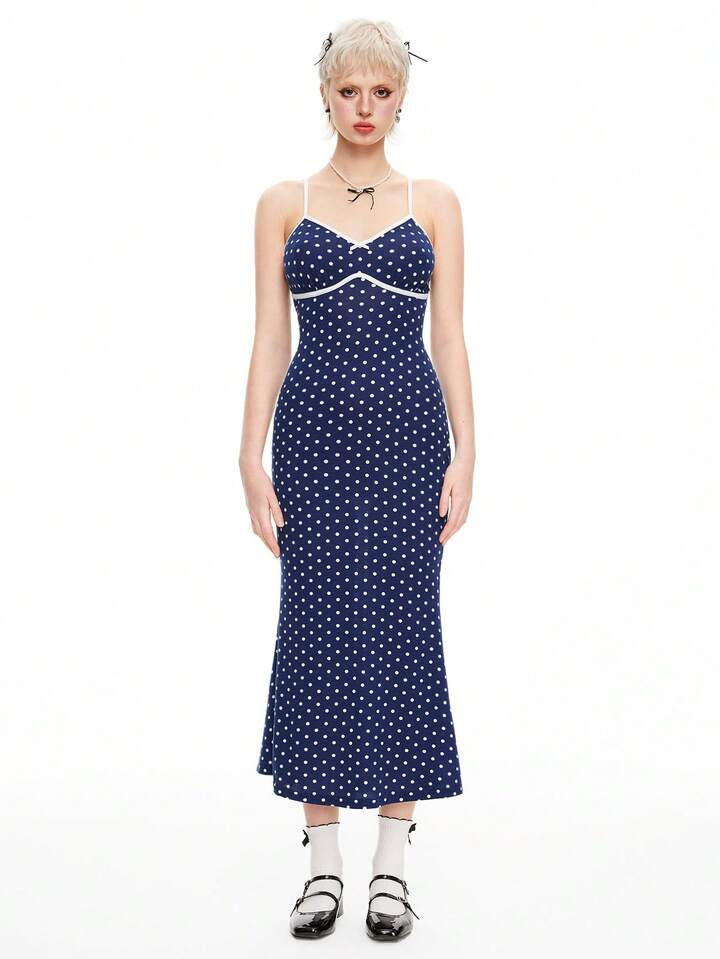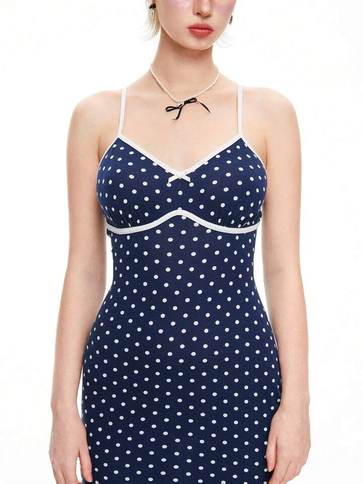 Kawaii Women's Polka Dot Print Simple Daily Spaghetti Strap Dress