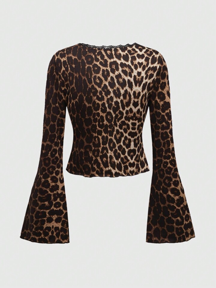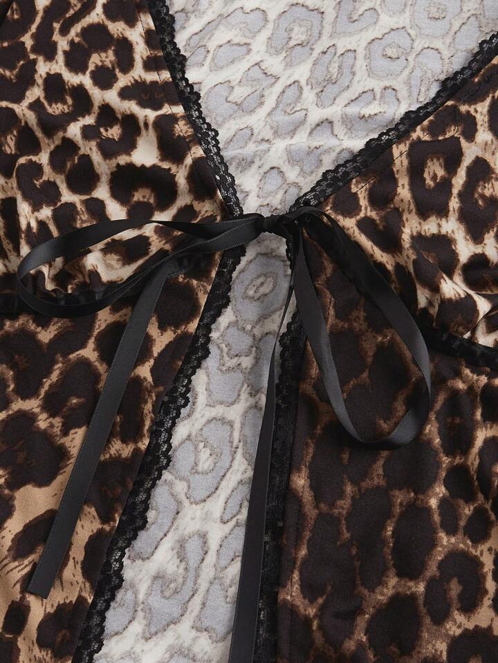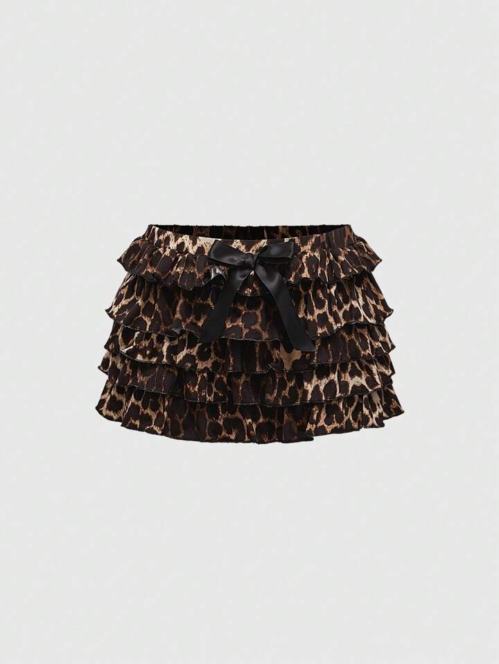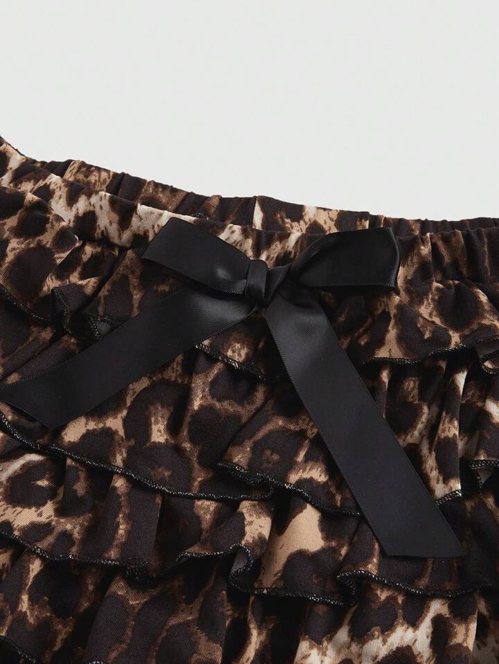 Kawaii Women's Retro Y2K Leopard Print Ribbon Tie Cardigan & Ruffle Hem Puff Shorts 2 Pieces Set