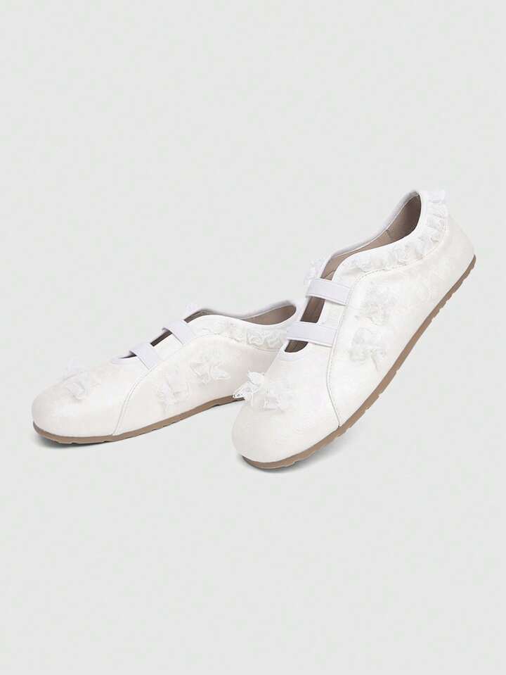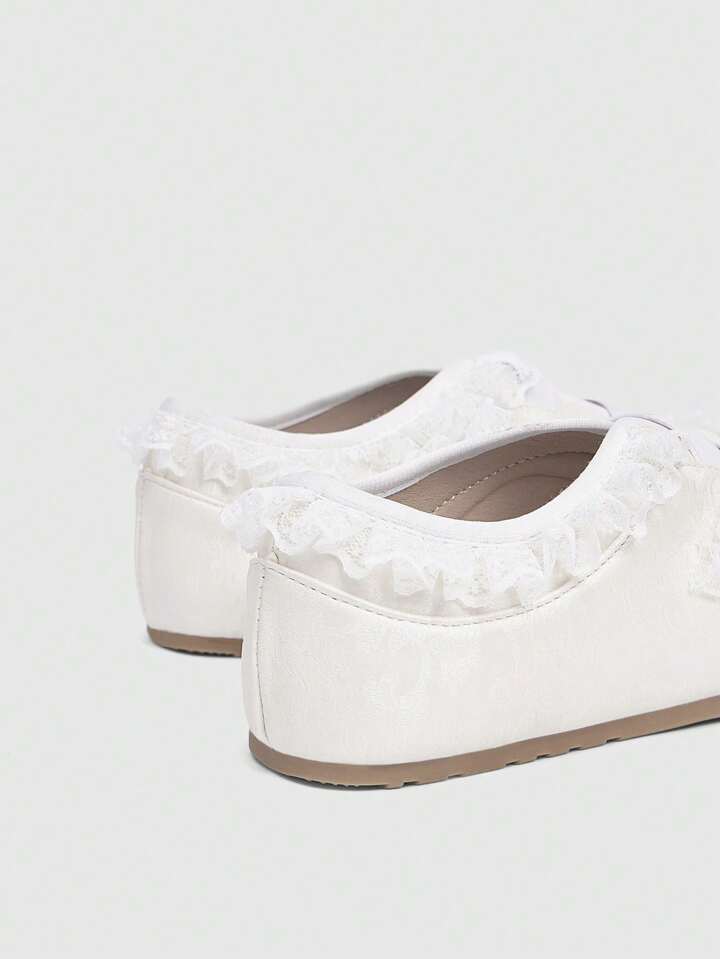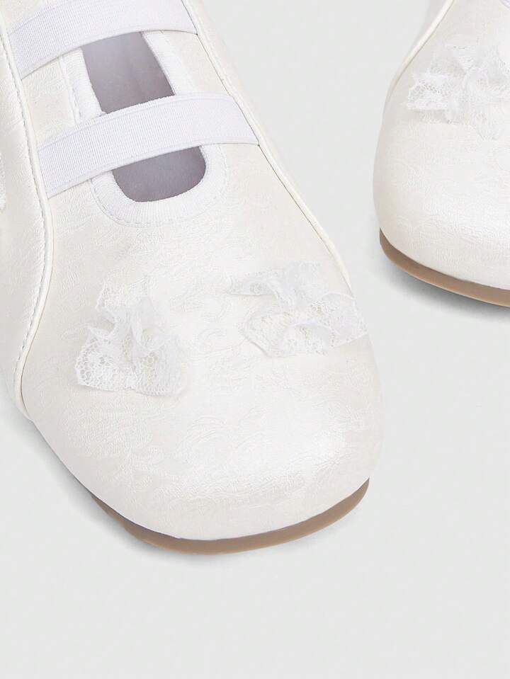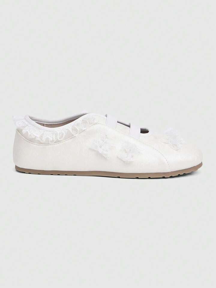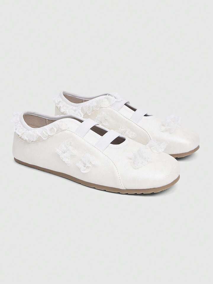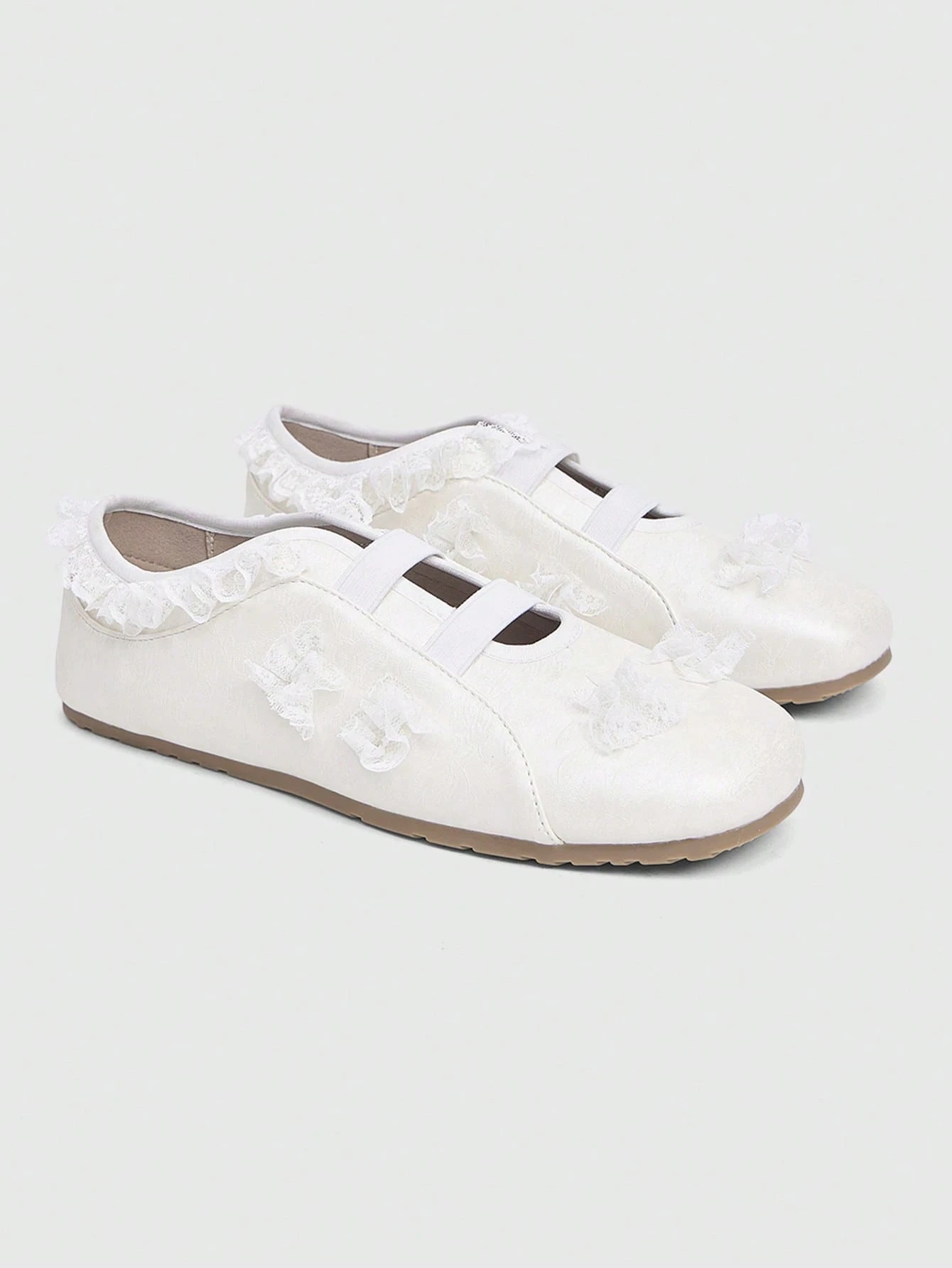 Kawaii Women's Slip On Lace Trim Ballet Flats, Sweet Criss-Cross Tie Mary Jane Dress Shoes, Casual Comfortable Ballet Flat Shoes