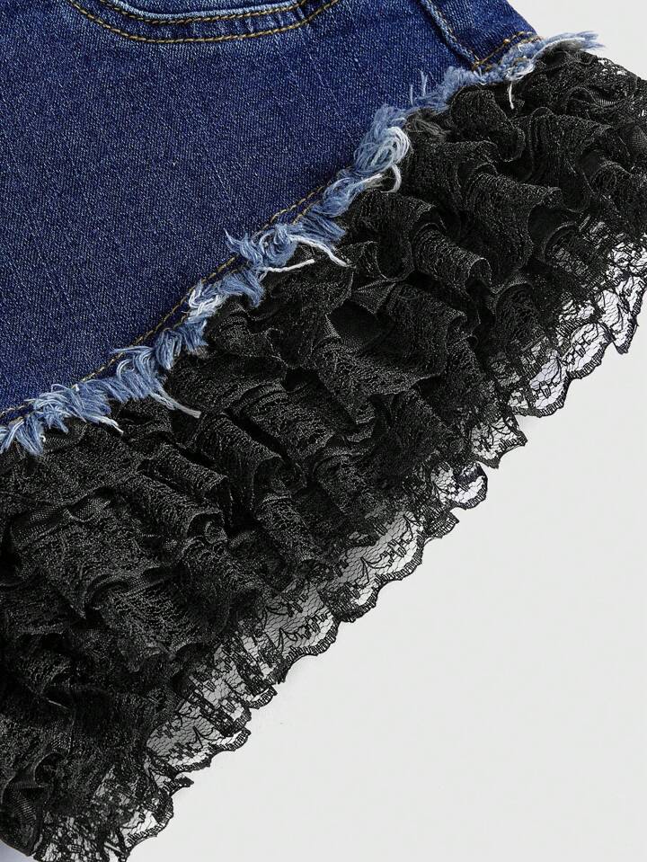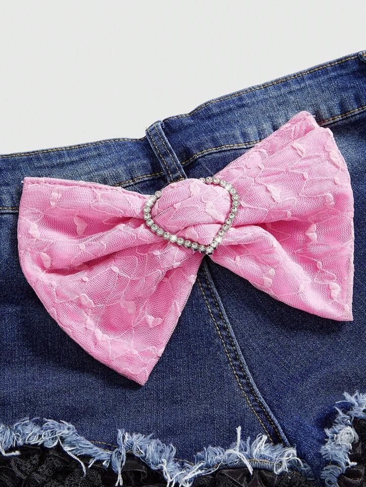 Kawaii Women's Y2k Minimalist Sexy Ultra Low Rise Lace Trimmed Bow Denim Shorts