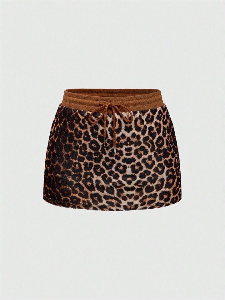 Kawaii Y2K Low Waist Vintage Rhinestone Leopard Print Velvet Mini Skirt For Women