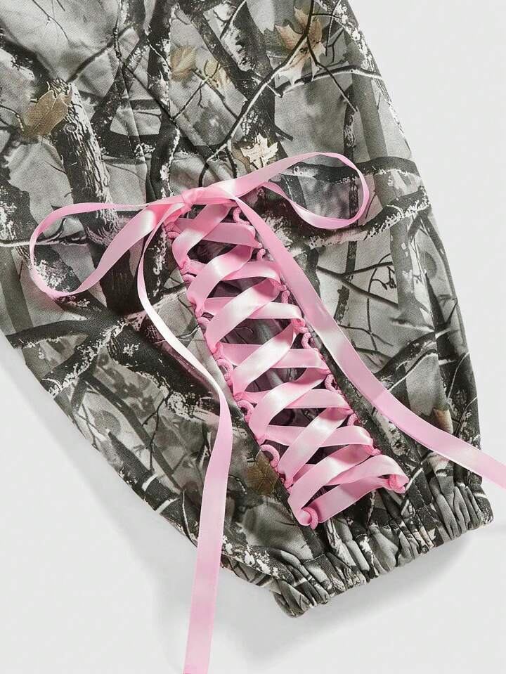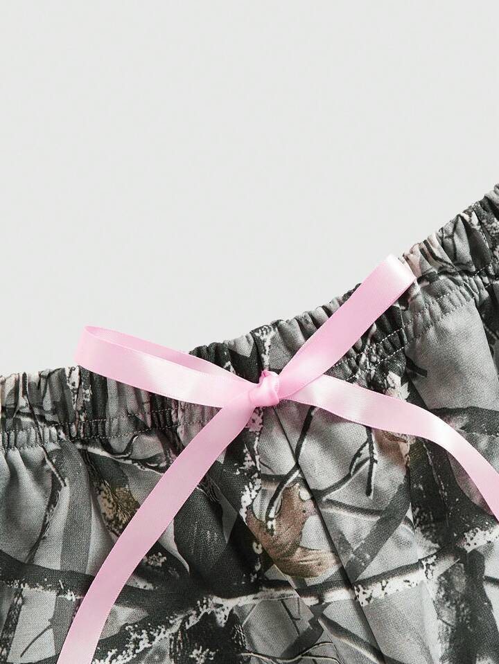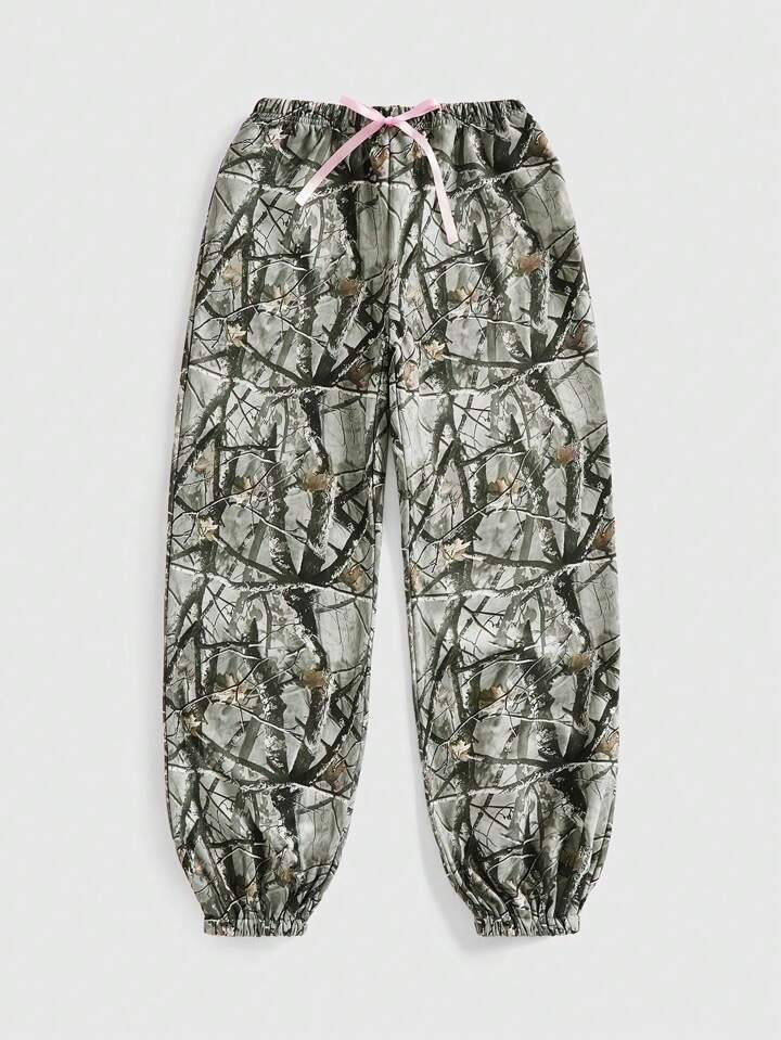 Kawaii Y2K Style Women's Loose Camo Bowknot Strap Sweatpants