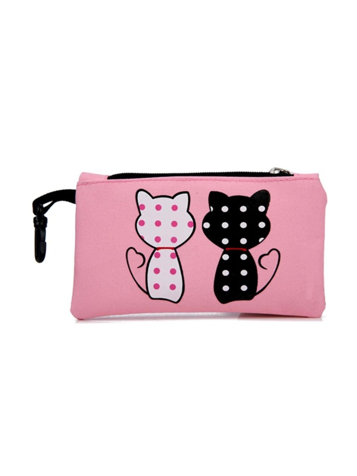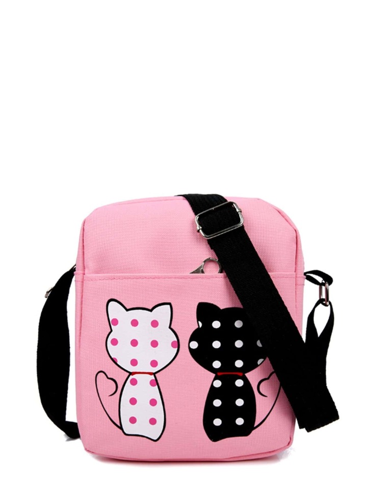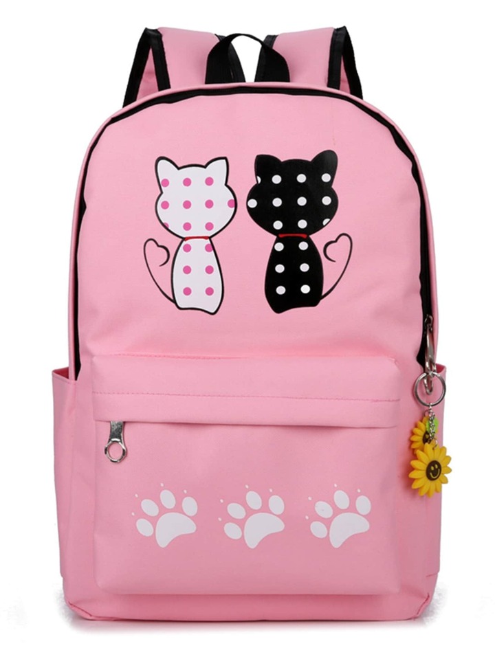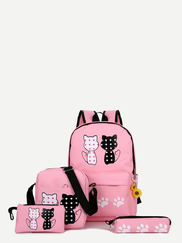 Kids Cat Print Backpack With Pencil Case 4pcs