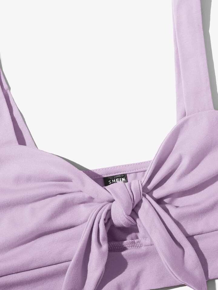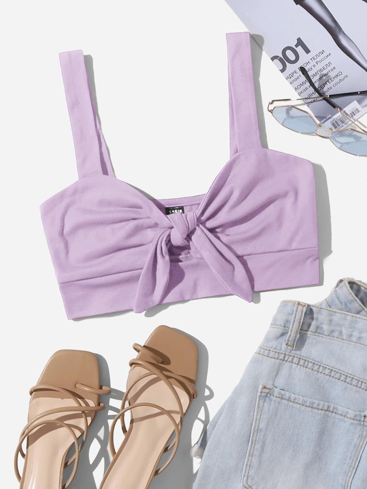 Knot Front Solid Crop Cami Top