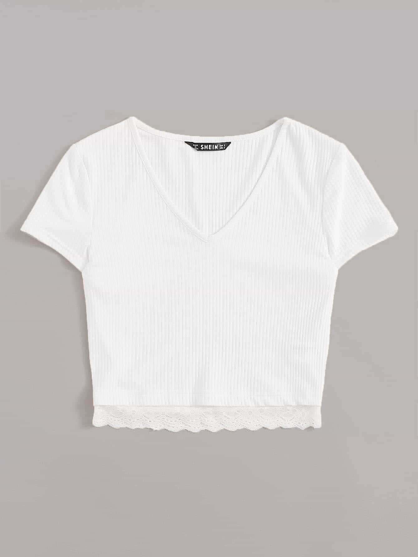 Lace Hem Ribbed Crop Top