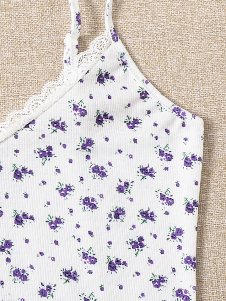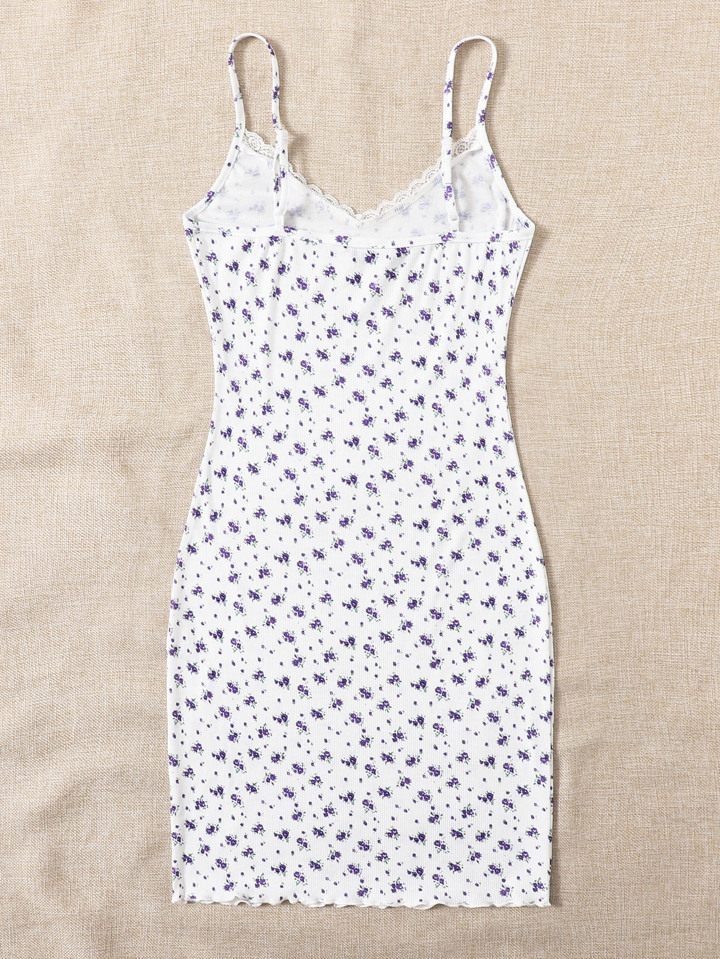Lace Trim Ditsy Floral Dress