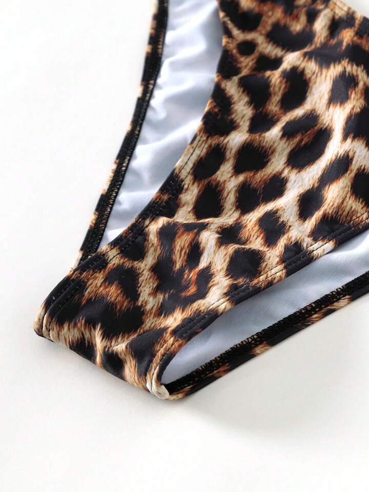 Leopard Print Wrap Knot Front Push Up Summer Beach Bikini Set