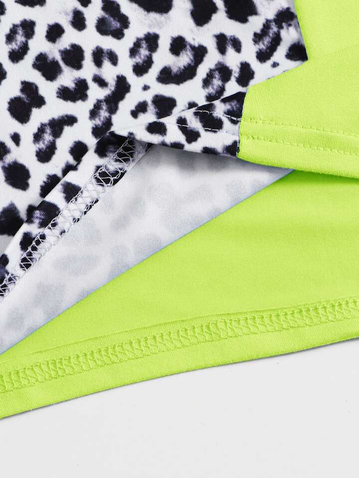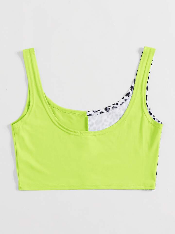 Leopard Spliced Neon Crop Tank Top