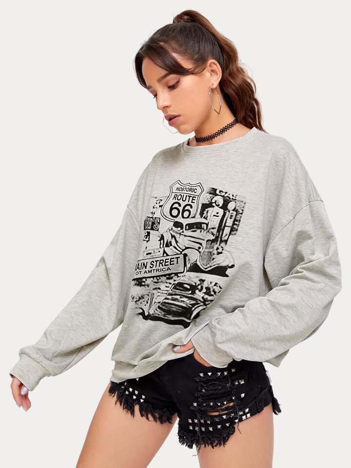 Letter Graphic Oversized Sweatshirt
