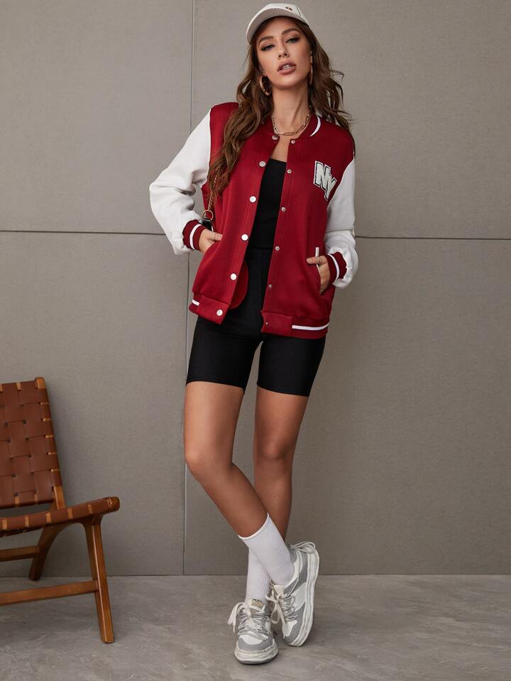 Letter Patch Detail Two Tone Varsity Jacket Fall Winter Cloth For Women