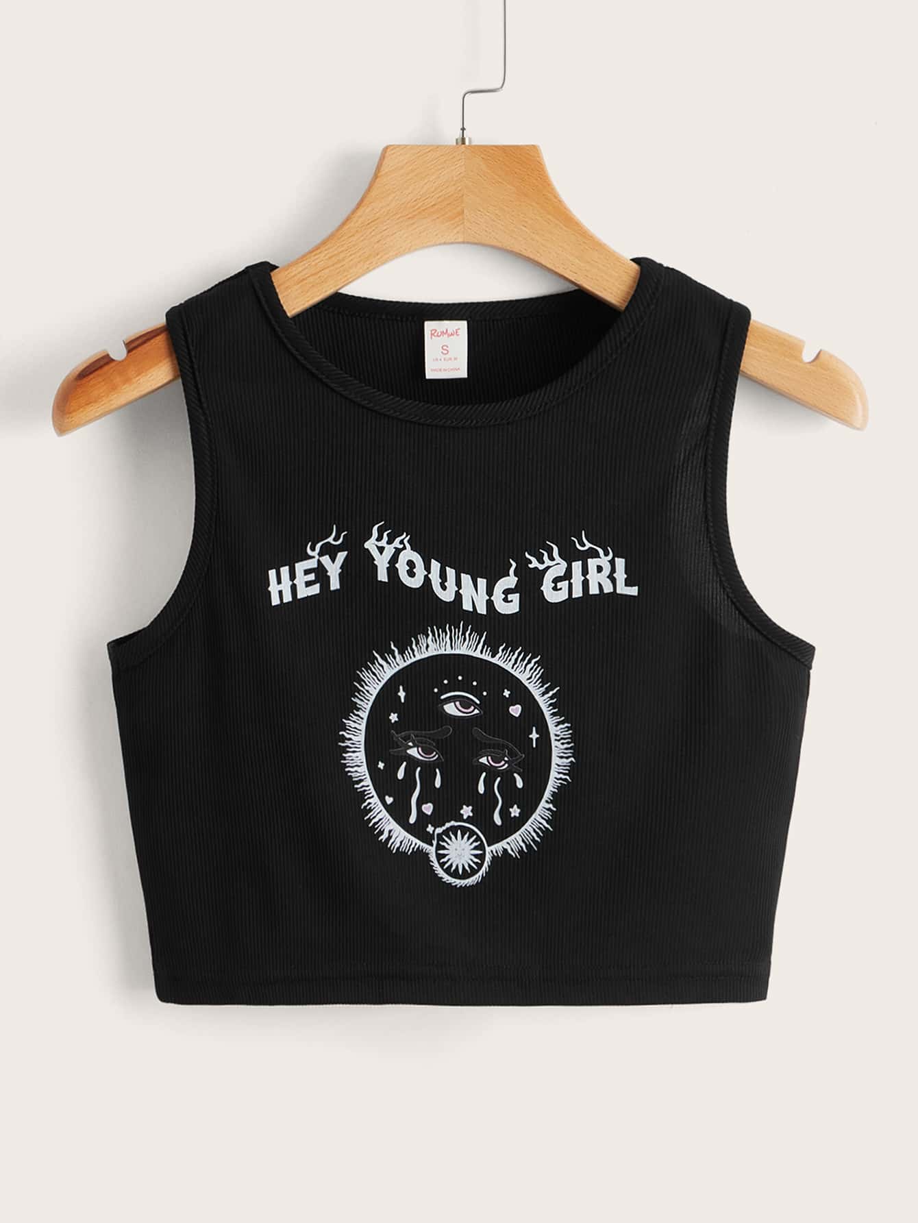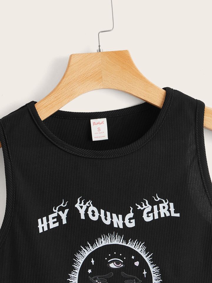 Letter Sun & Eye Graphic Ribbed Tank Top