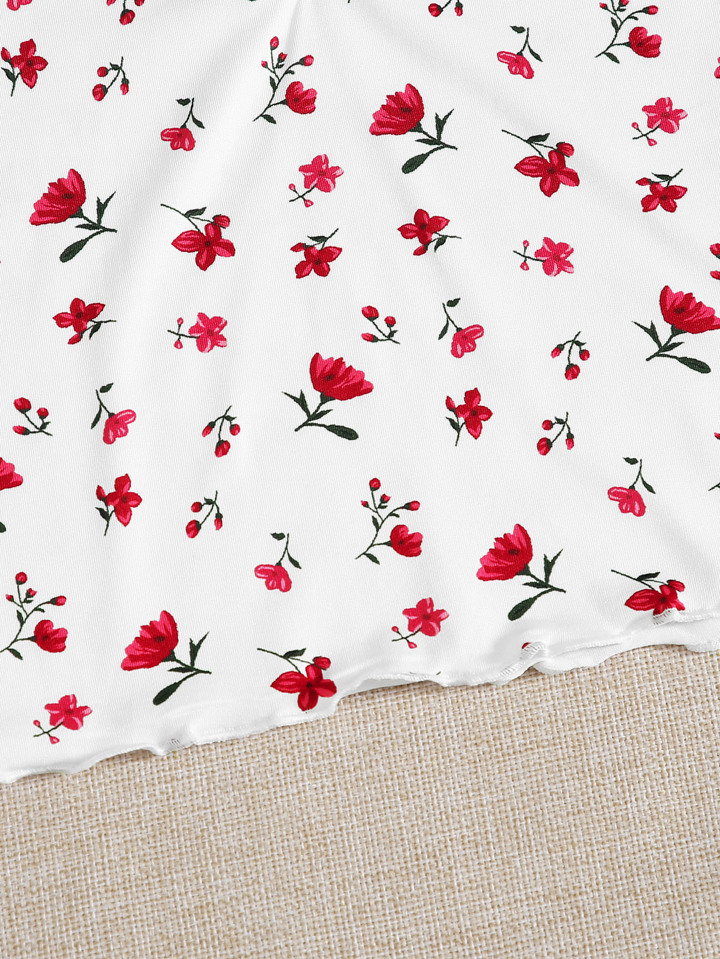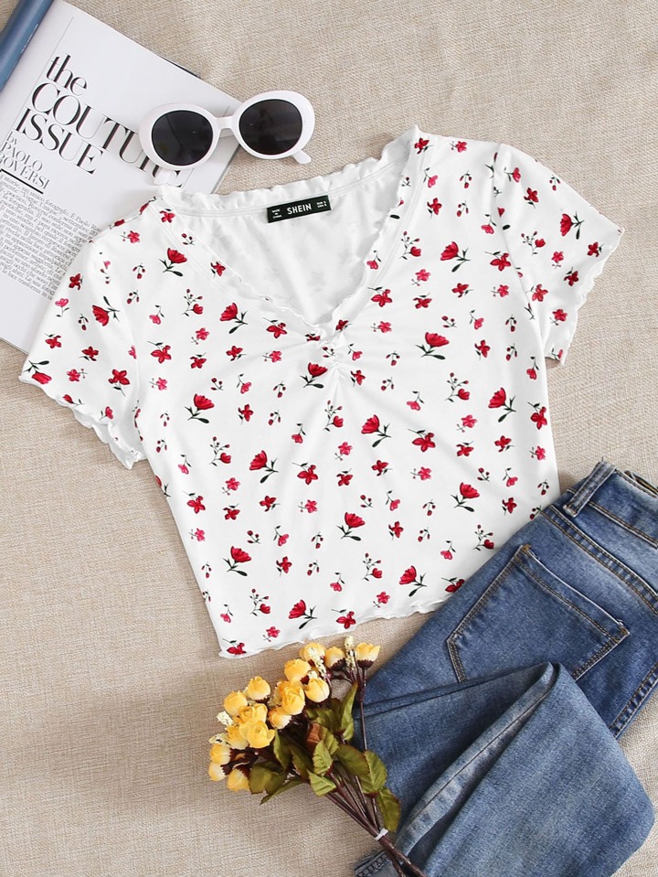 Lettuce Trim Ruched Detail Ditsy Floral Crop Top