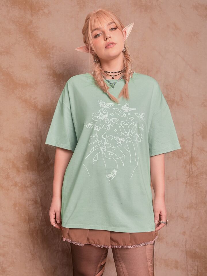 LineHome Plus Butterfly Print Drop Shoulder Tee
