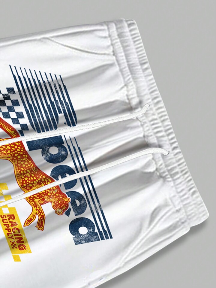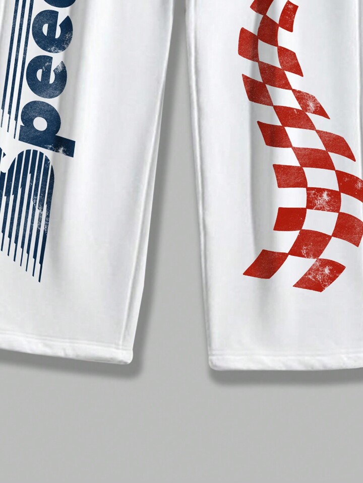 Lsscid Men's Cheetah & Letter Printed Drawstring Waist Jogger Pants In Checkered Pattern