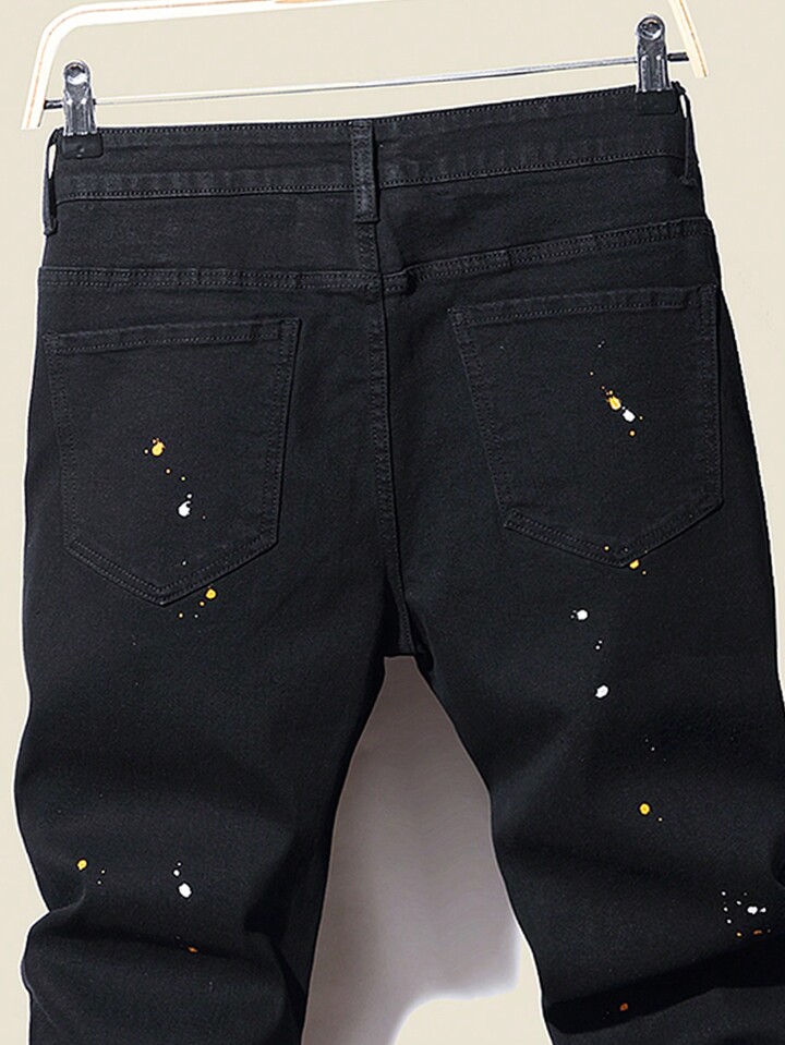 Manfinity Roughcore Guys Splash Ink Print Ripped Patched Jeans
