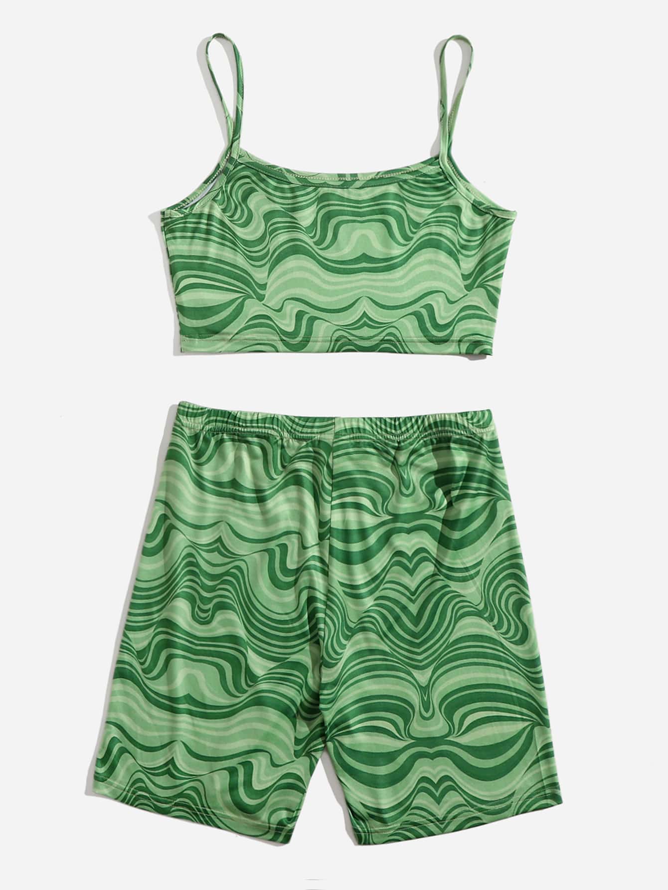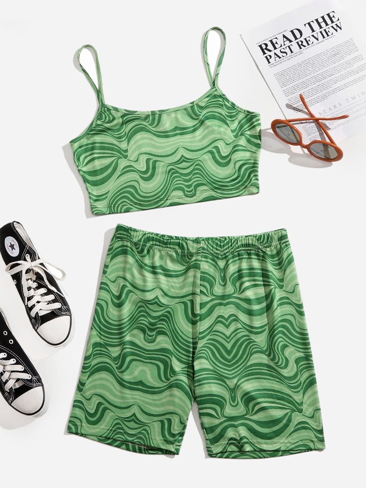 Marble Print Cami Top And Biker Shorts Set