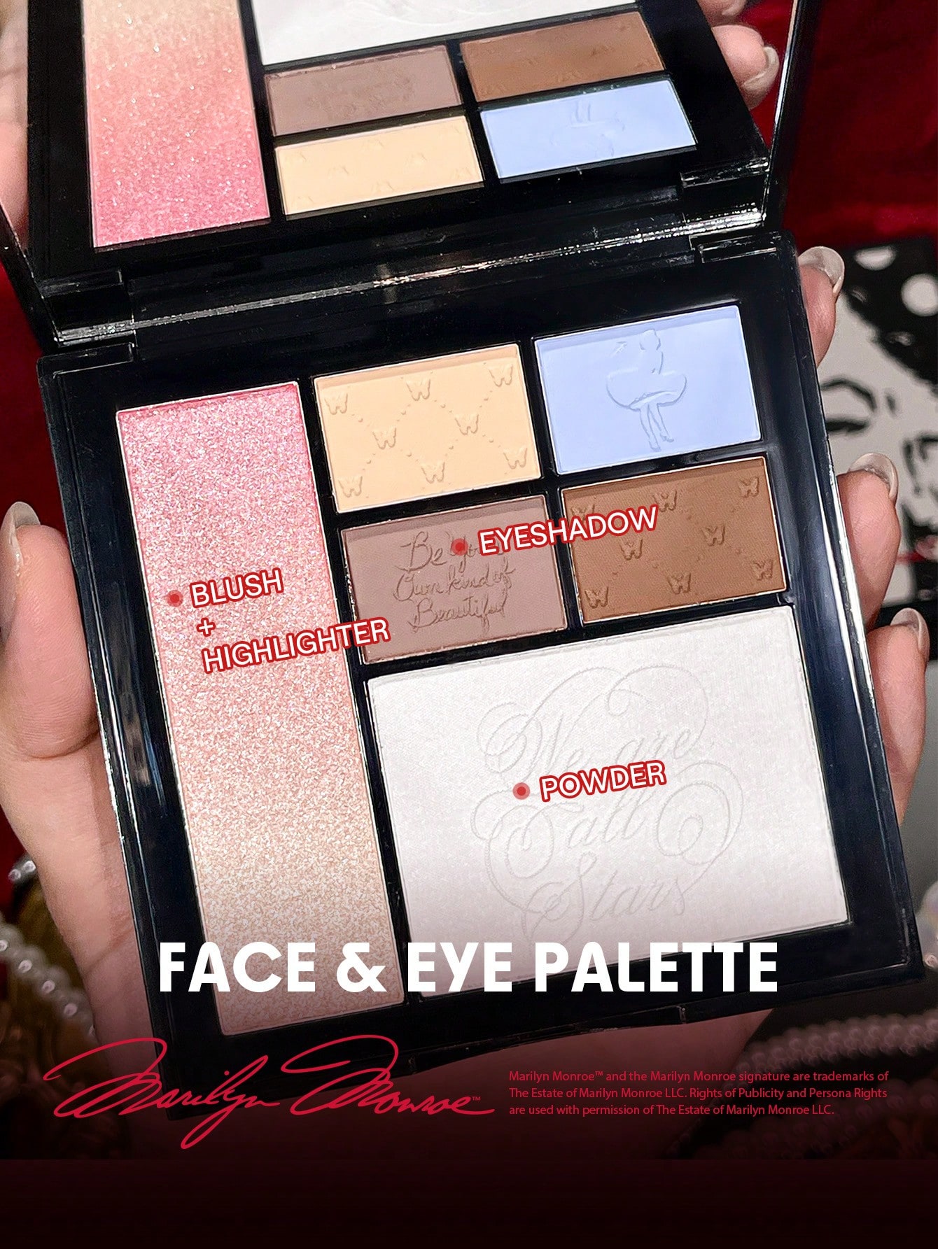 Marilyn Monroe X SHEGLAM Day Dreamer Face & Eye Palette All-In-1 Multi-Use On-The-Go Face Palette Blue Brown Pink Shimmer Highlighter Palette Pressed Setting Powder Portable Eyeshadow Brand Beauty Makeup Face Paint Cosmetic For Women Girls Perfect For Fall Winter Ideal For Y2K Fancy Fashion Suitable For Birthday Christmas Present Party Ready Best Color
