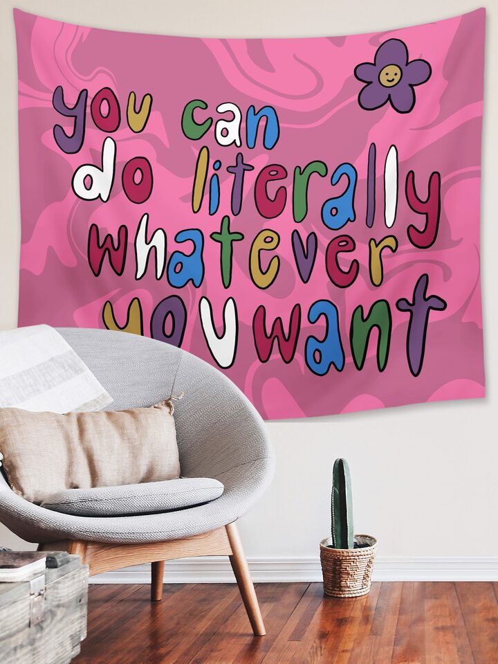 MeeraPage Slogan & Flower Print Tapestry