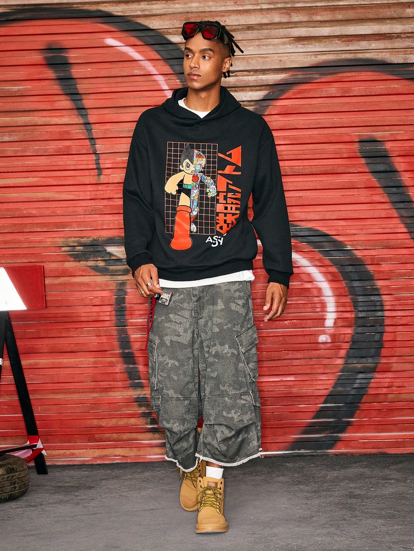 Astro Boy X ROMWE Men's Cartoon Figure Graphic Fleece Hoodie, Suitable For Gathering, Anime Fans Outings