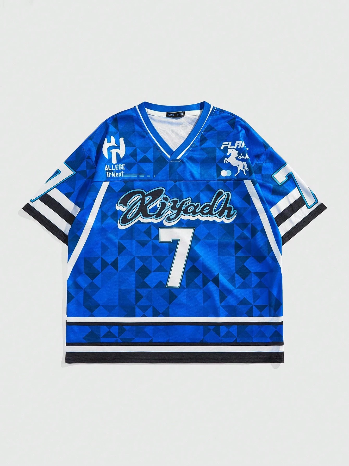 Prep Men's Numeric Geometric Print V-Neck Short Sleeve Sports T-Shirt