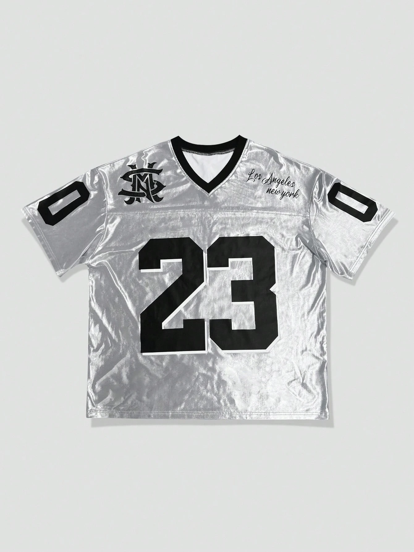Prep Men's Preppy V-Neck Short Sleeve Numeric Pattern Casual Summer T-Shirt