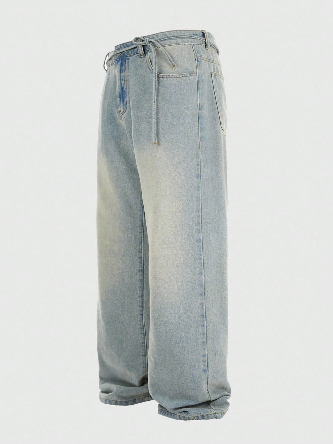 Street Life Men's Solid Color Knotted Pocket Casual Wide Leg Jeans