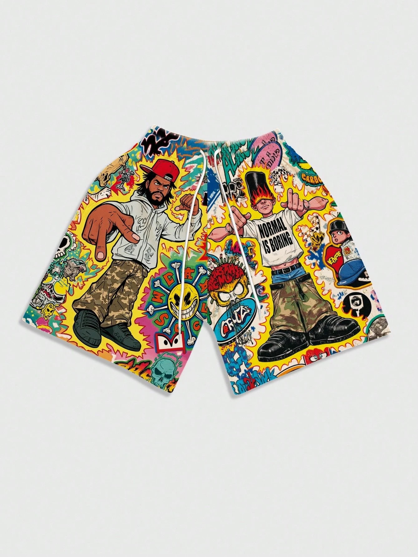 Street Life Men's Street Graphic Printed Shorts, Suitable For Daily Wear In Spring/Summer