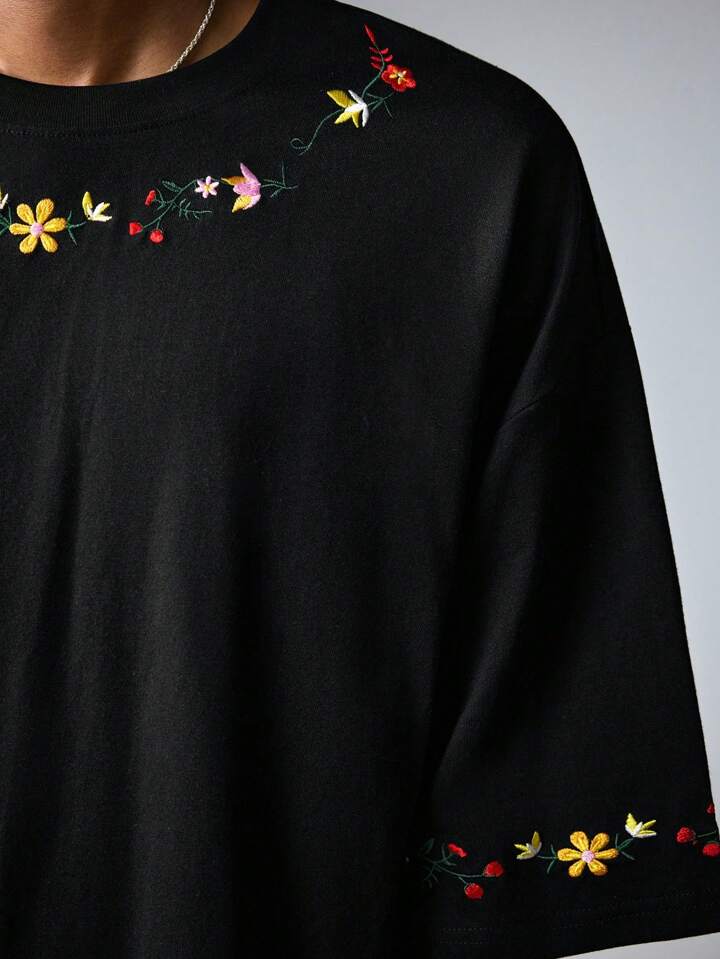 Street Life Men's Vacation Embroidered Floral Crew Neck Short Sleeve Casual Summer T-Shirt