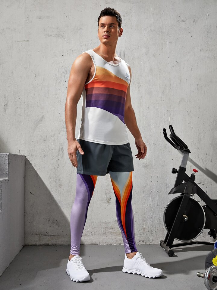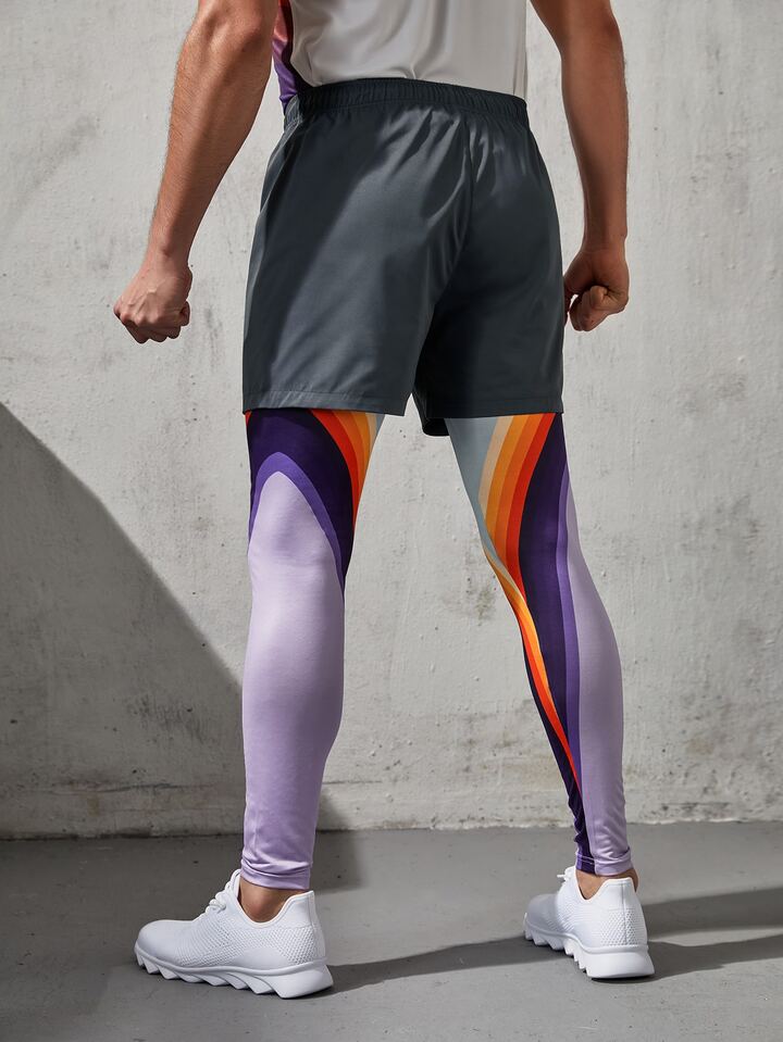 Men 2 In 1 Chevron Print Sport Tights With Phone Pocket