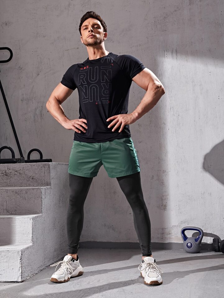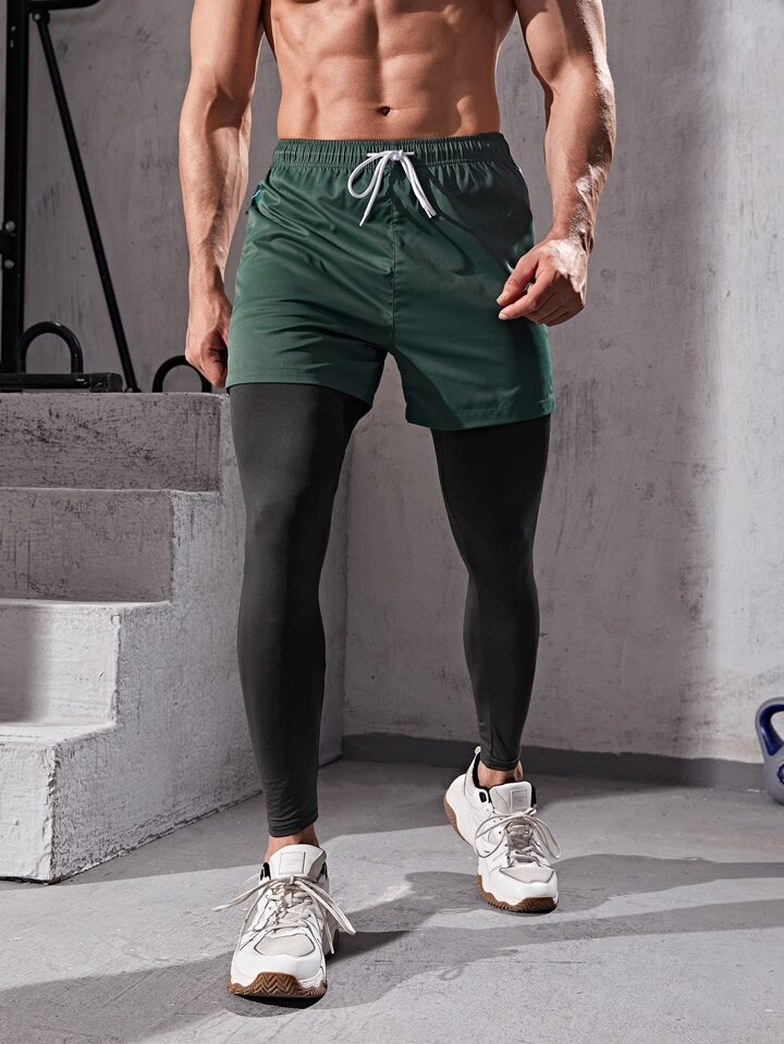 Men 2 In 1 Drawstring Waist Sport Tights With Phone Pocket
