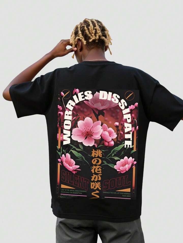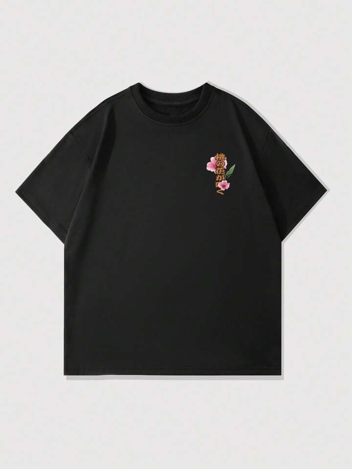 Men Floral And Letter Print Crew Neck Summer Casual Short Sleeve T-Shirt, Vacation