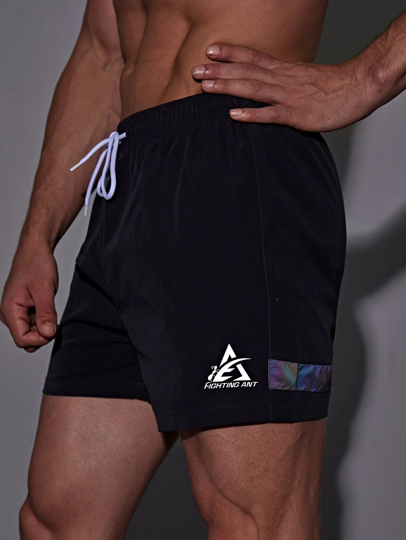 Men Reflective Letter Graphic Drawstring Sports Shorts