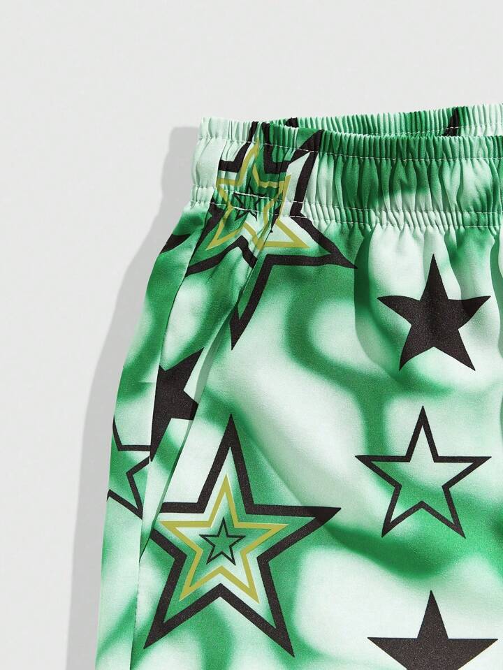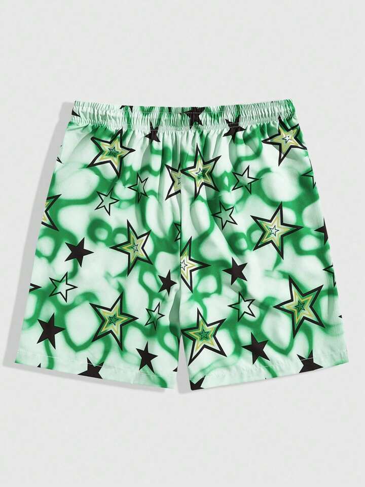 Street Life Men Summer Casual Star Printed Shorts With Drawstring Waist, School