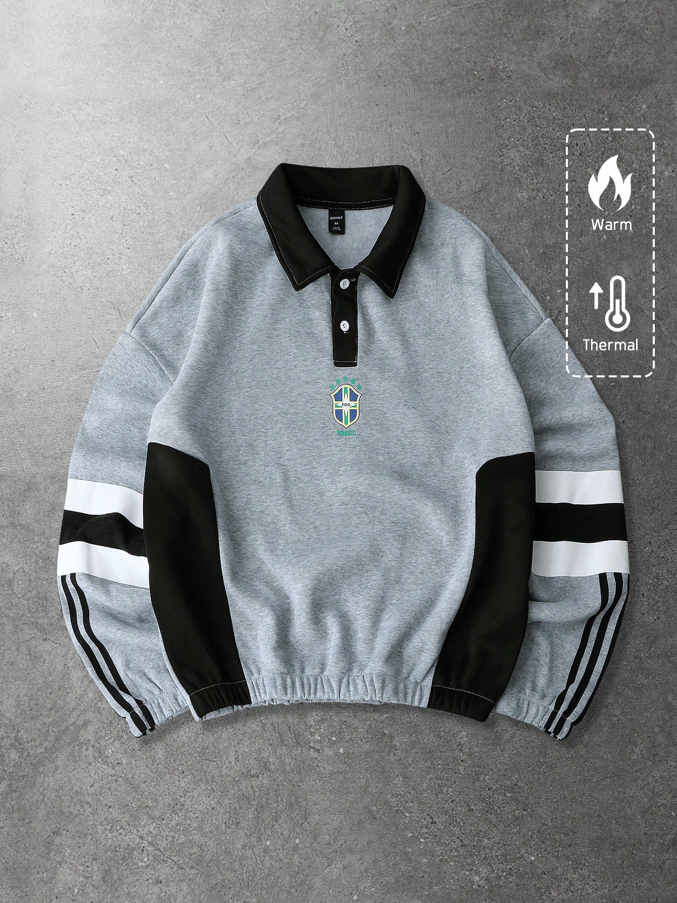 Men's Autumn/Winter Sports Sweatshirt With Brazil Color Scheme Logo Print And Contrast Patchwork