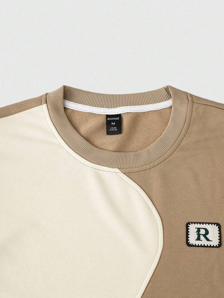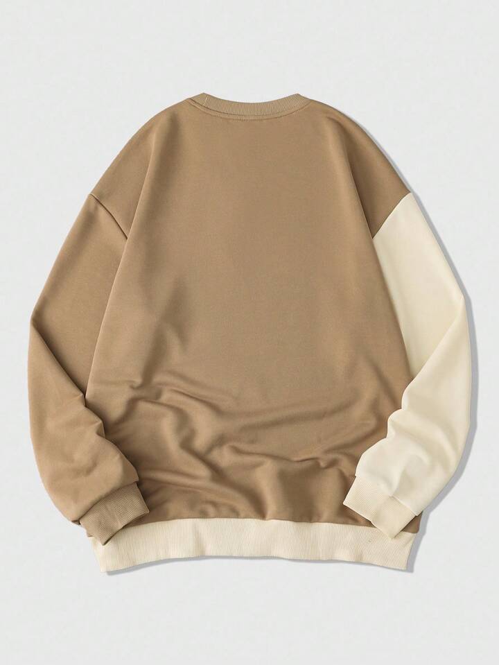 Men's Casual Colorblock Letter Graphic Crew Neck Sweatshirt