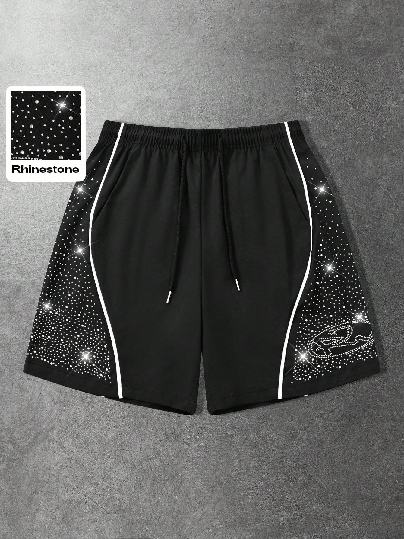 Men's Casual Rhinestone Drawstring Shorts