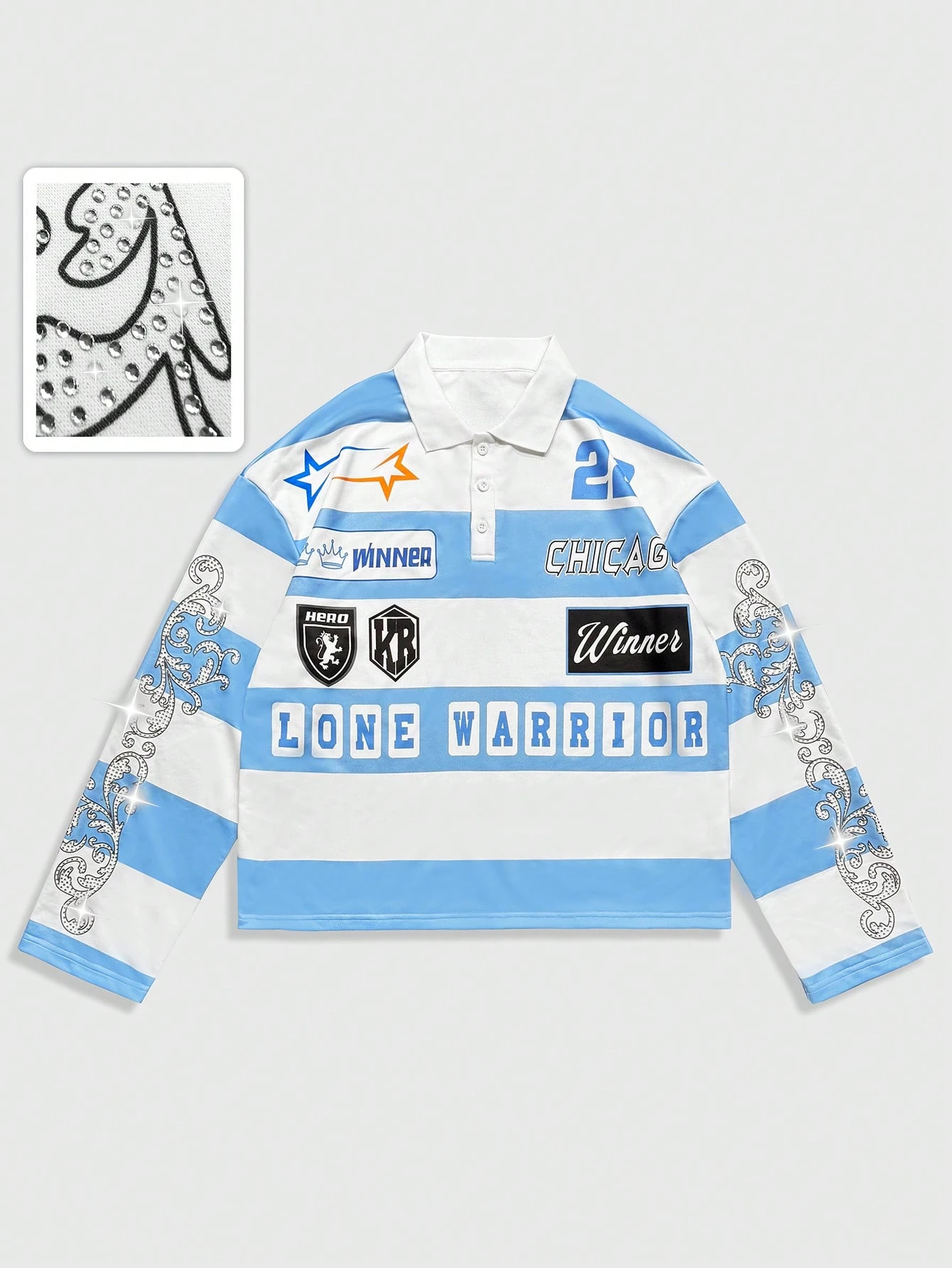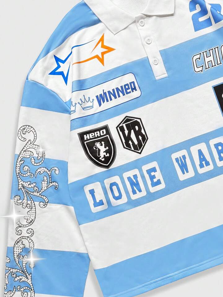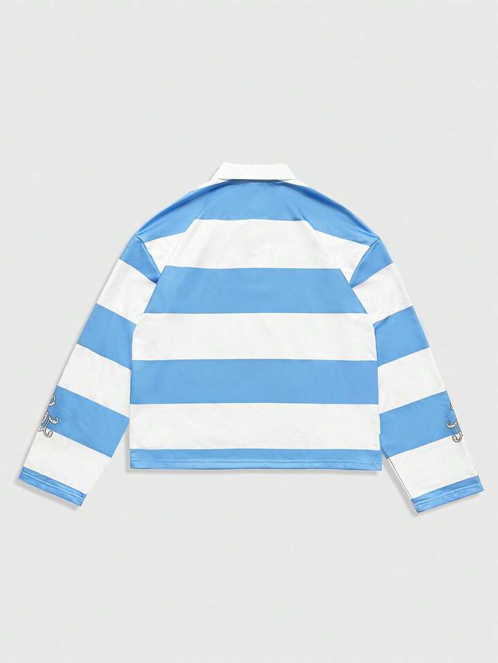 Men's Casual Striped Preppy Half-Placket Long Sleeve Polo Shirt