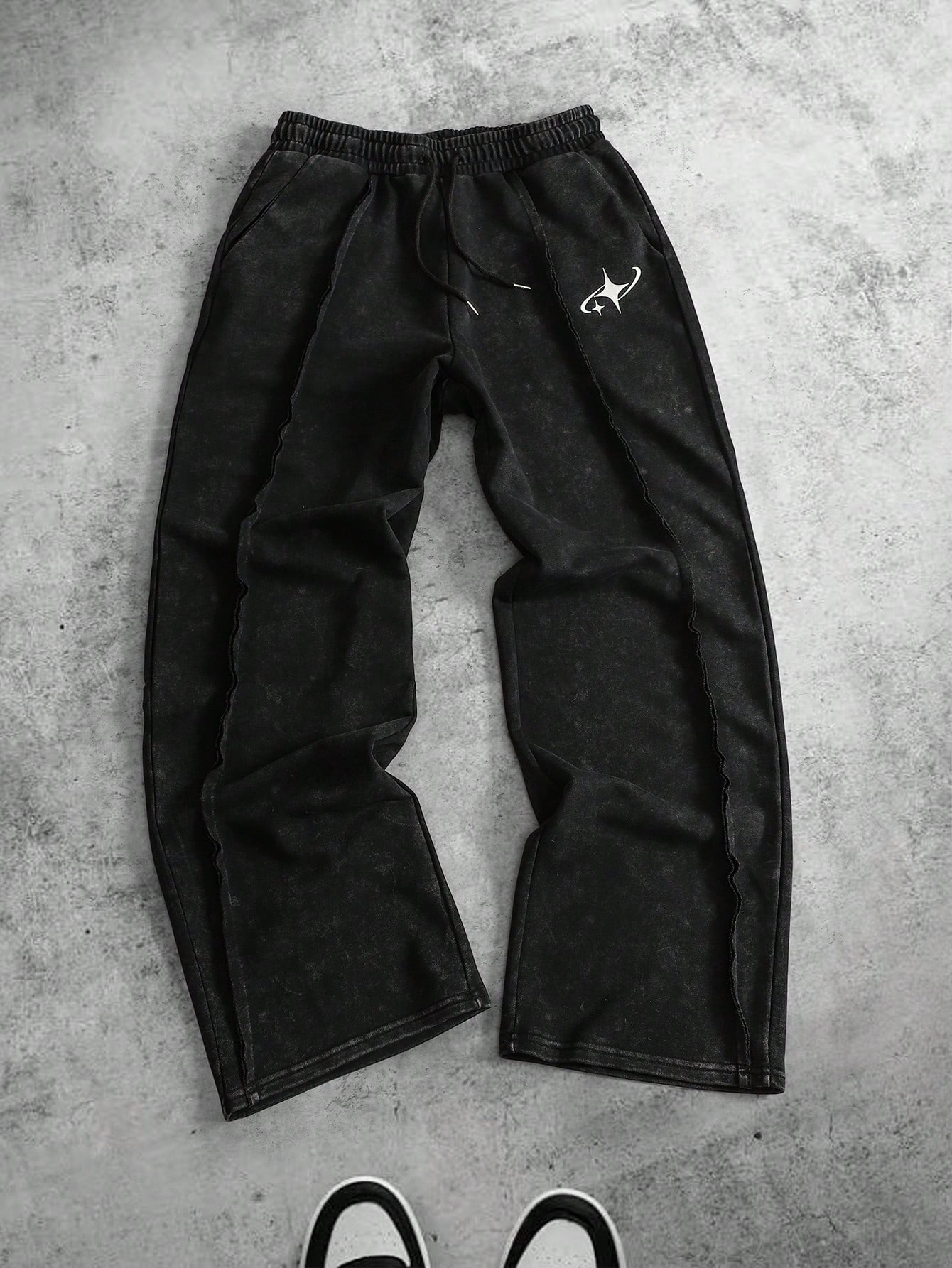 Men's Drawstring Waist Star Print Wide Leg Sweatpants