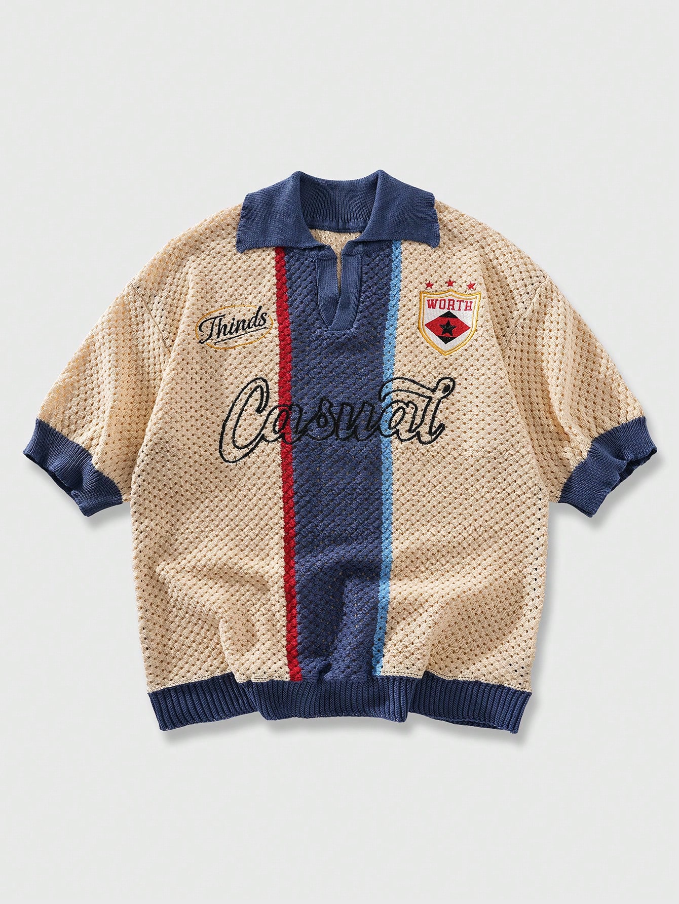 Men's Embroidered Knit Polo Shirt, Short Sleeve Top