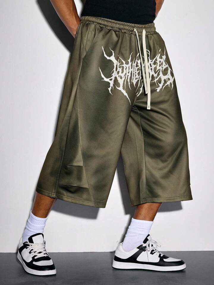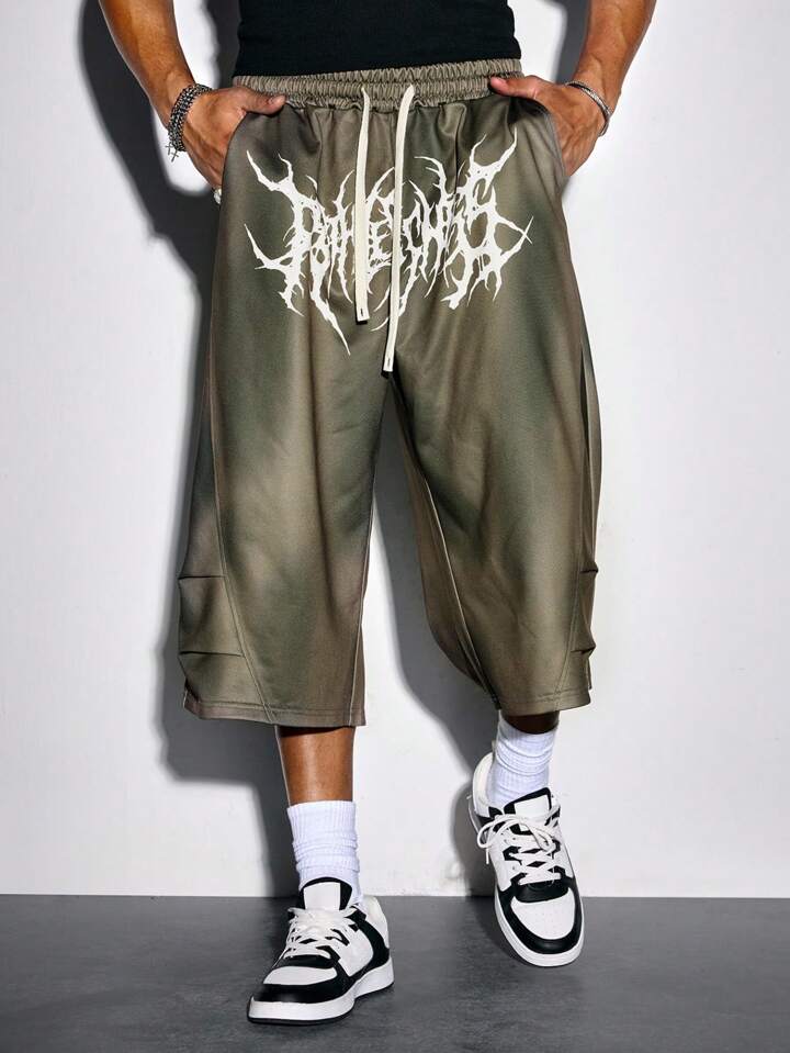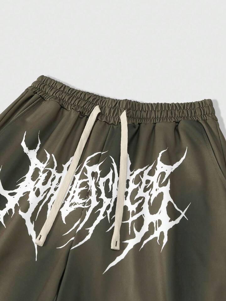 Men's Gothic Letter Print Drawstring Waist Wide Leg Loose Sweatpants, Halloween