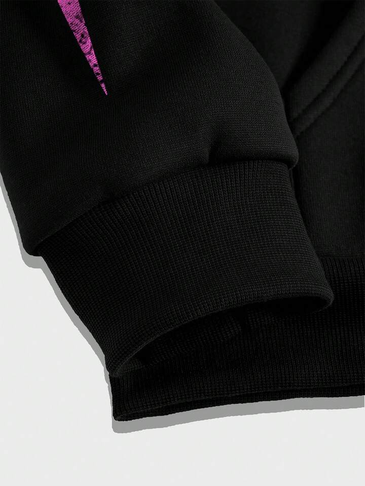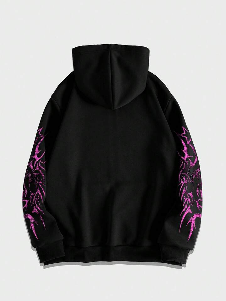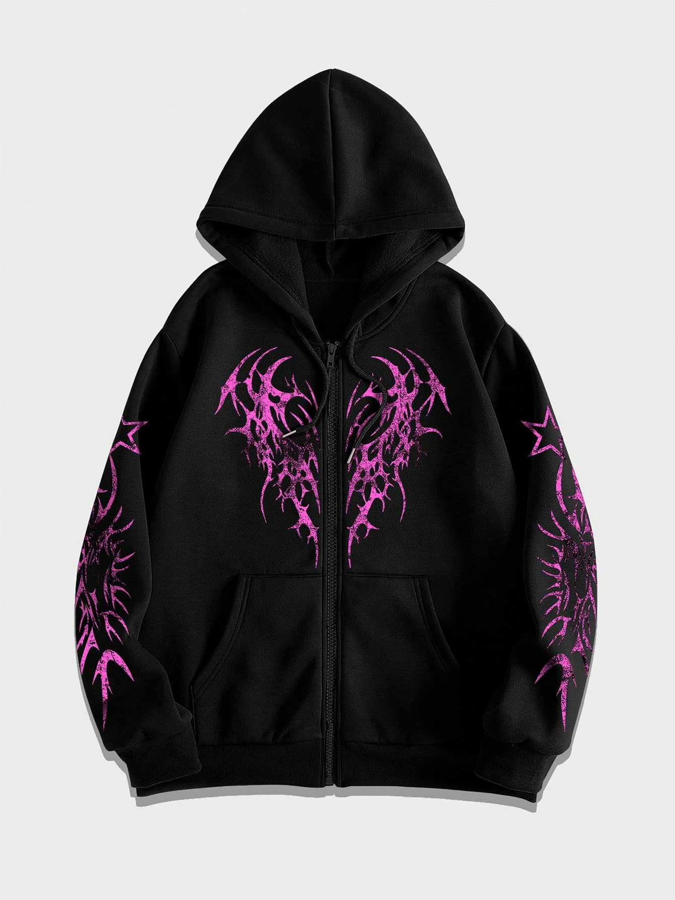 Men's Gothic Print Zip Front Drawstring Hooded Sweatshirt