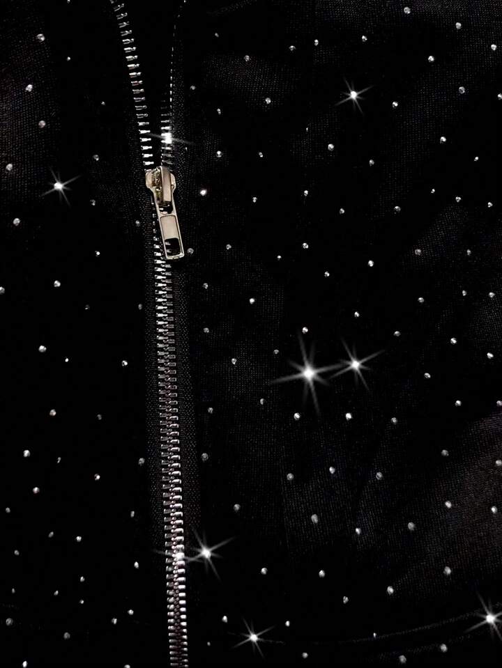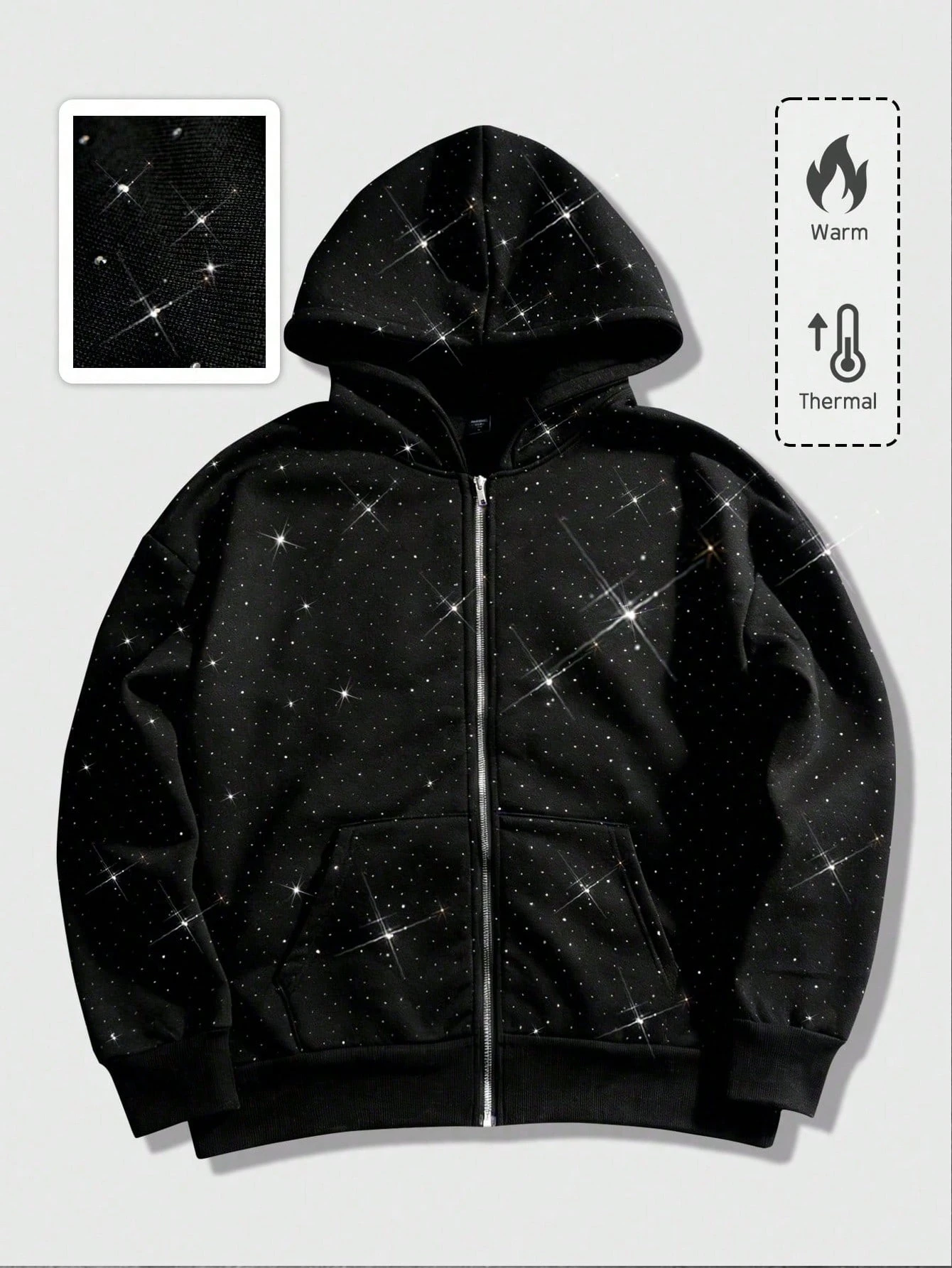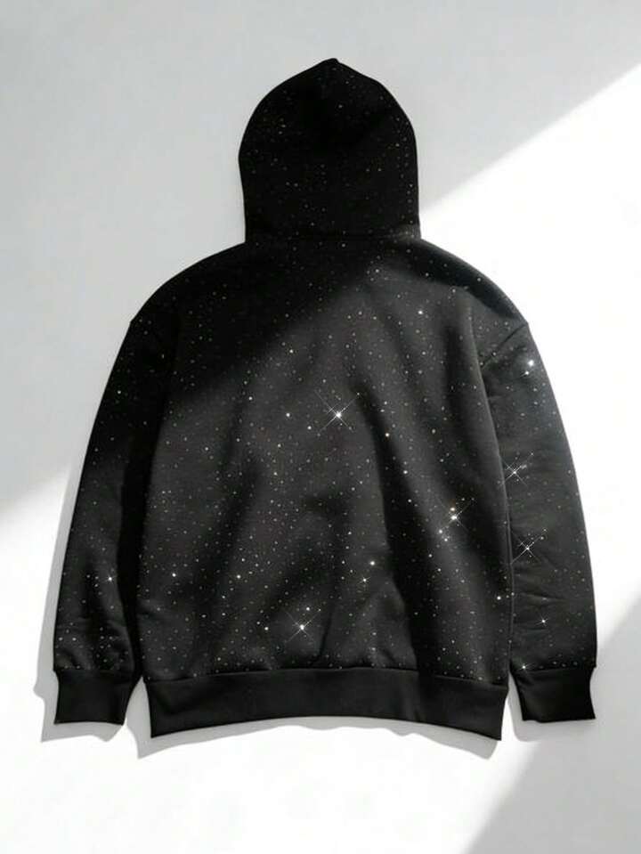 Men's Heavy Rhinestone Zipper Casual Hoodie