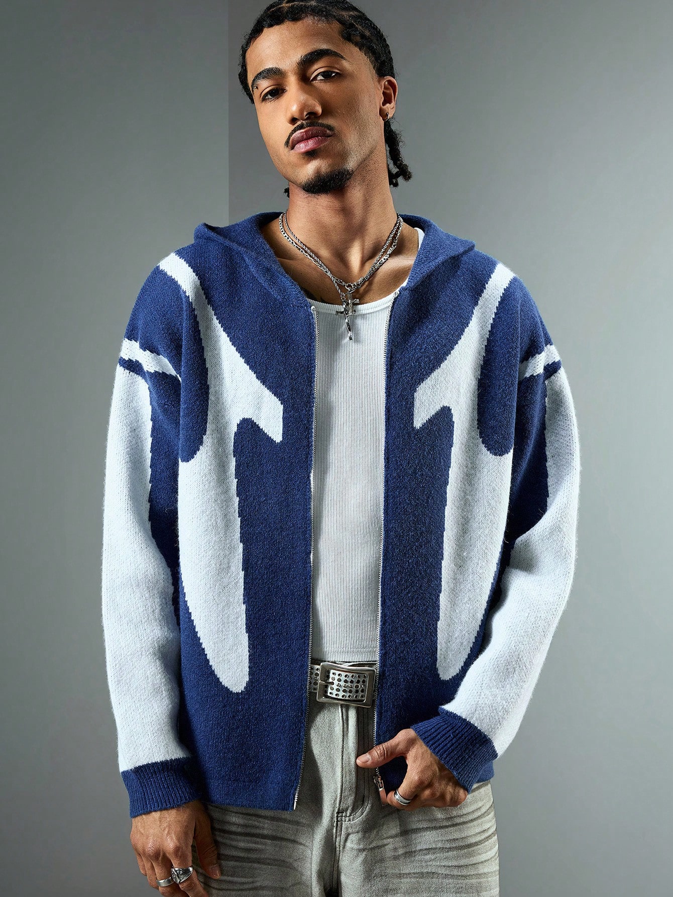 Men's Hooded Irregular Jacquard Personalized Street Wear Cardigan, Fashion