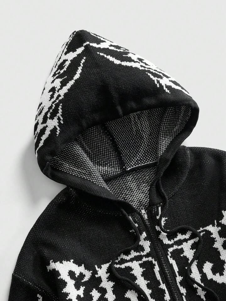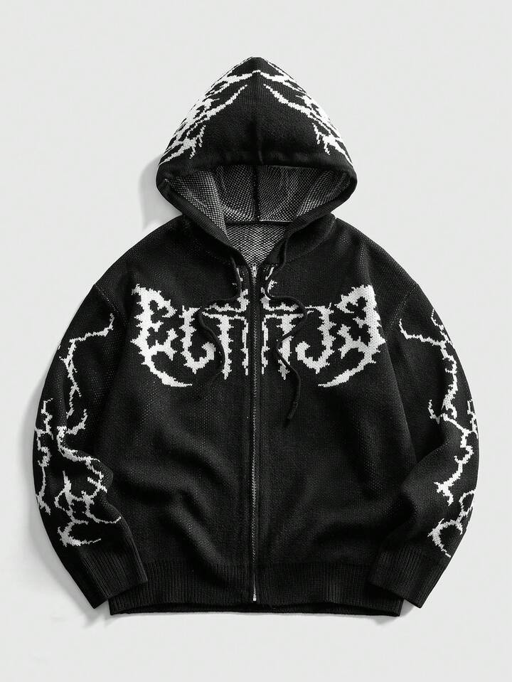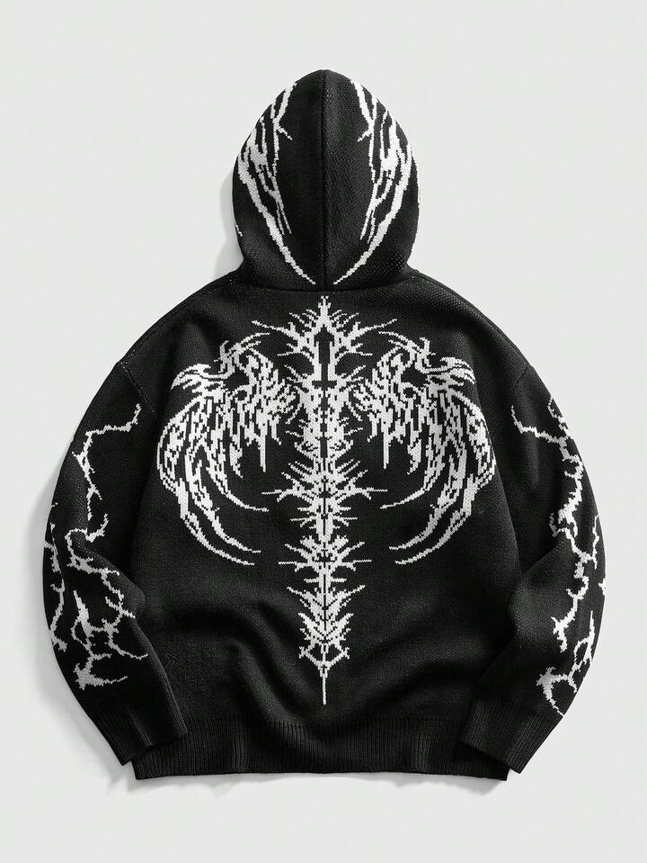 Men's Hooded Skeleton Wing Dark Street Knit Cardigan