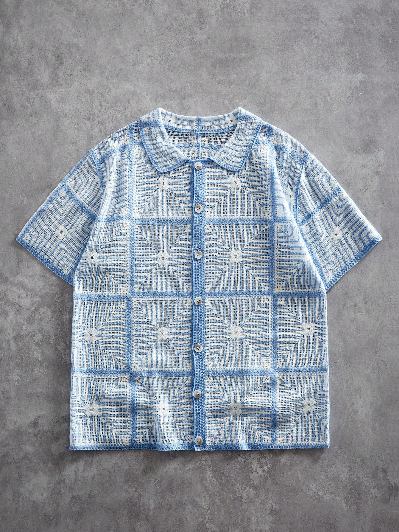 Men's Polo Collar Knit Short Sleeve Cardigan
