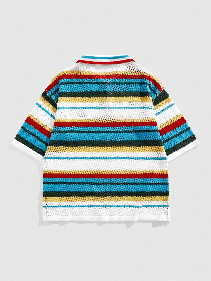 Men's Preppy Embroidered Pattern Loose Knit Polo Shirt, Knitted Short Sleeve Top